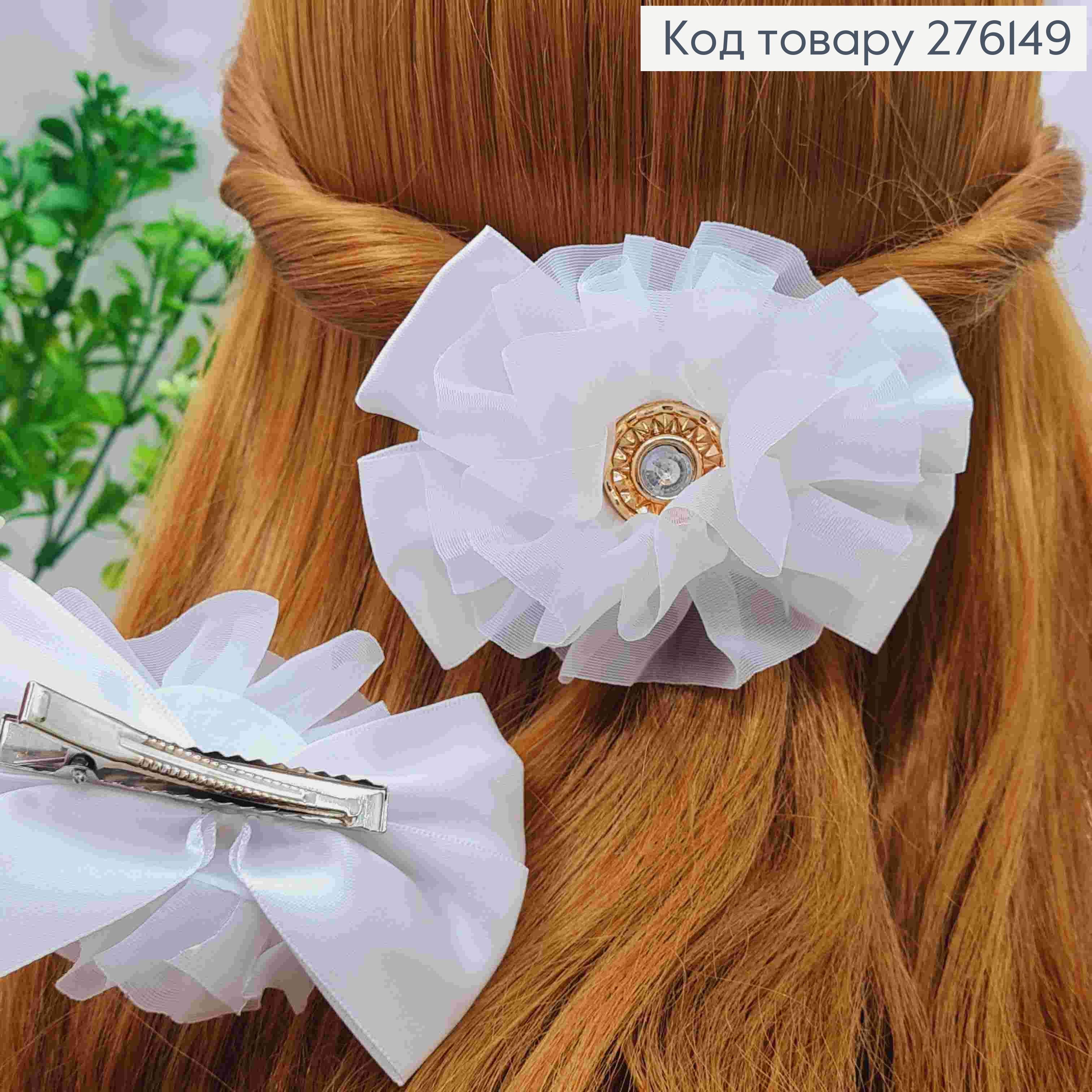 Бант БЕЛОГО цвета со стразами, на заколке 5,5, ткань атлас, размер 10*6,5см, Украина. 276163 фото