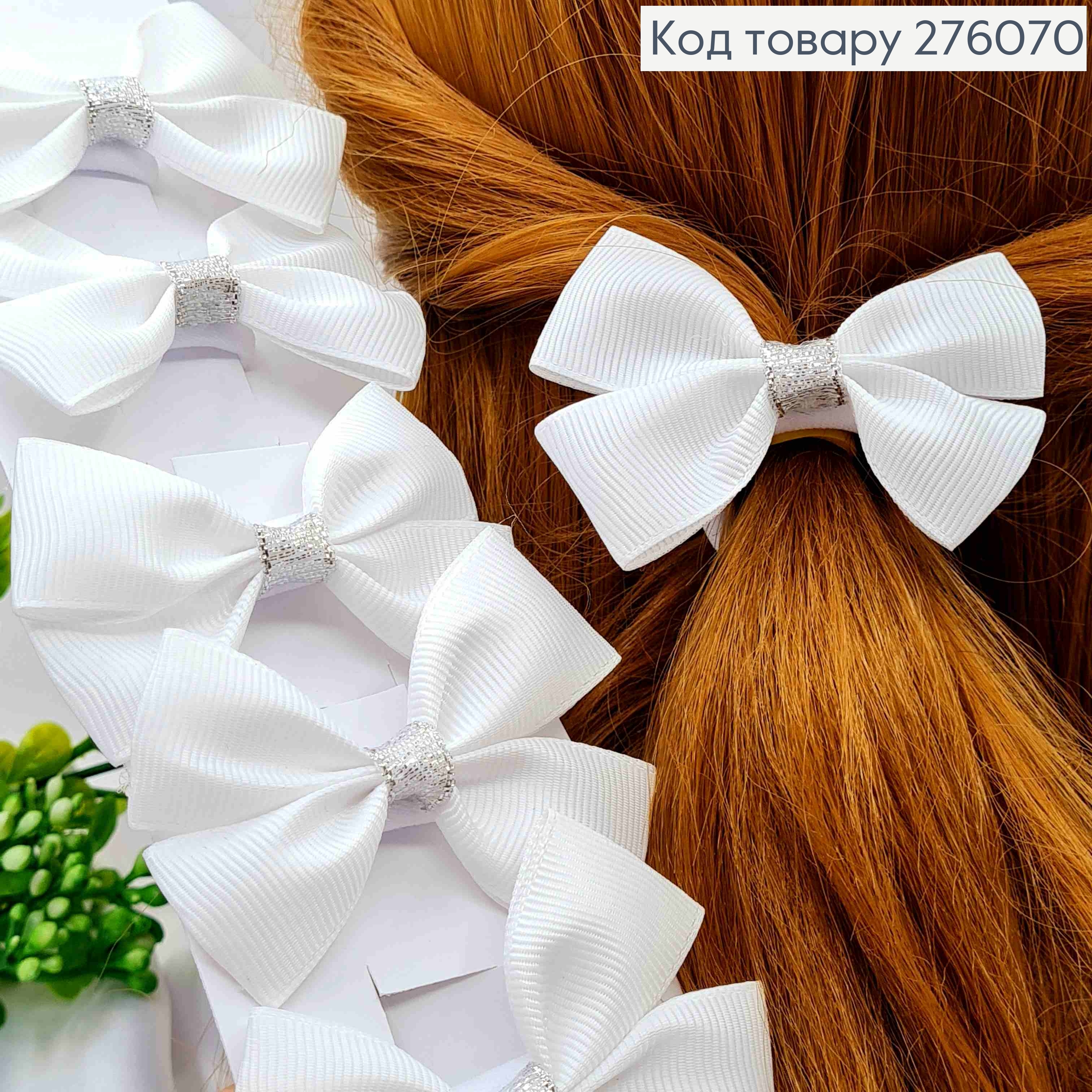 Бант БЕЛЫЙ с люрексом, на резинке, ткань репс, размер 7*4,5см, ручная работа