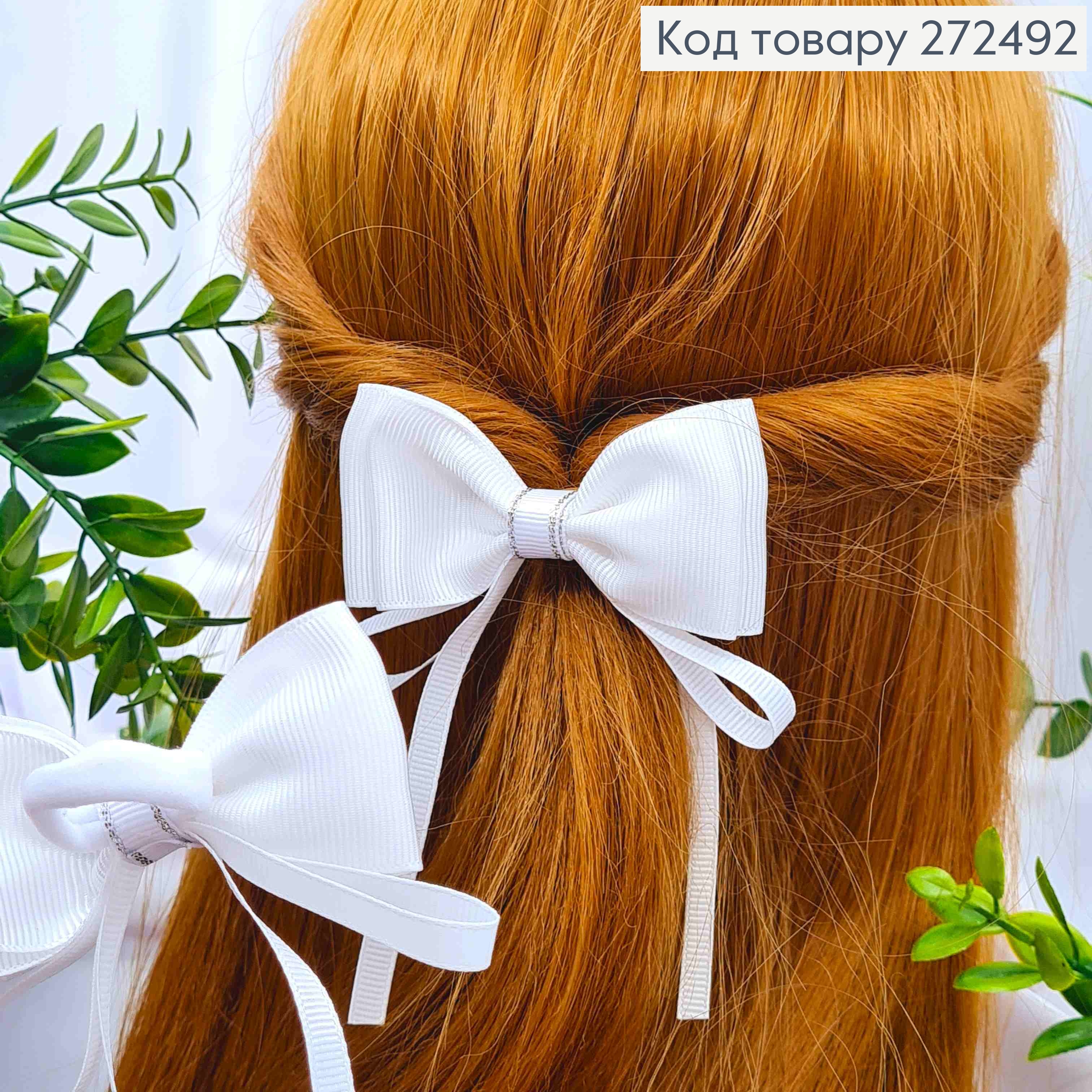 Бант БЕЛОГО цвета со стразами, на заколке 5,5, ткань атлас, размер 10*6,5см, Украина. 276163 фото