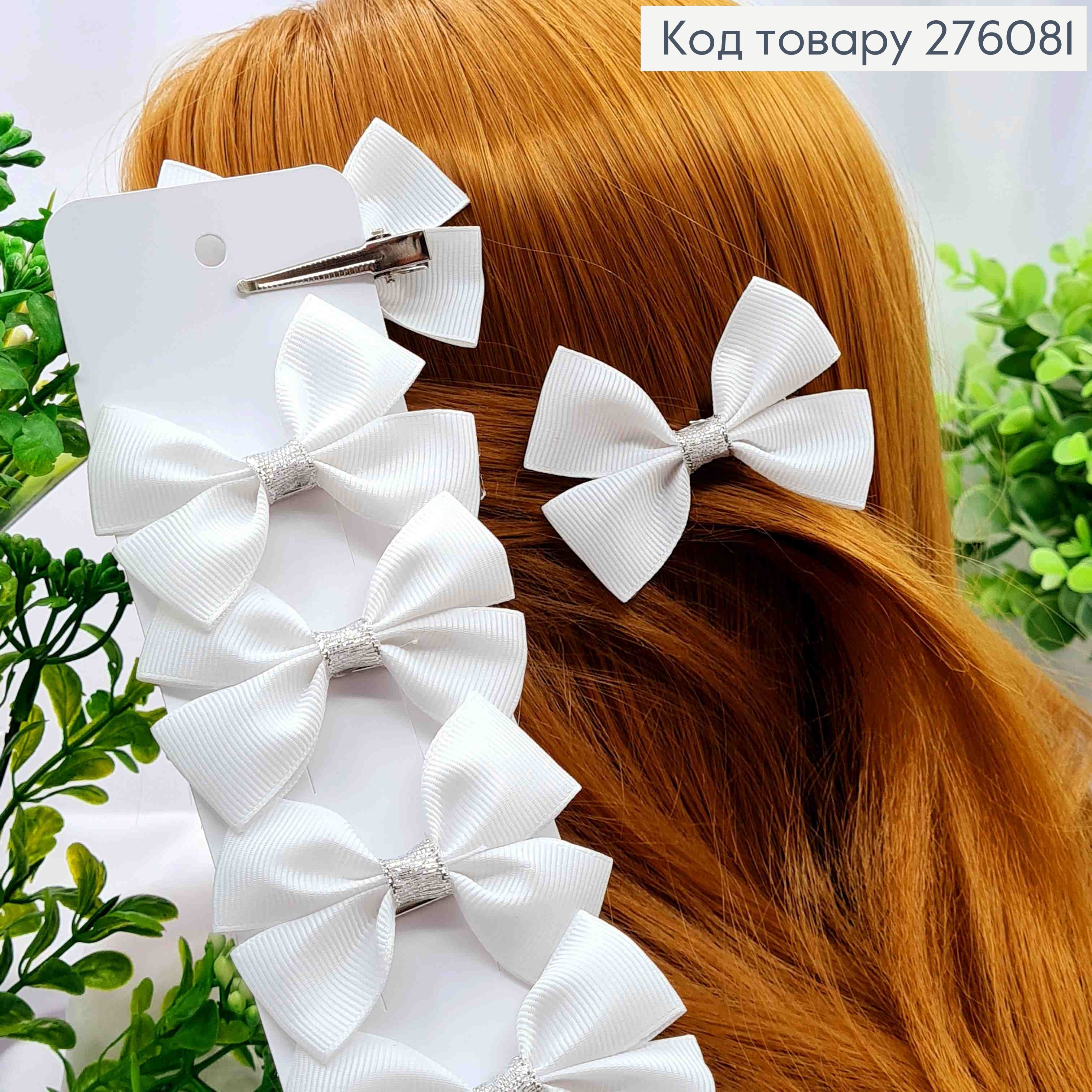 Бант БЕЛЫЙ с люрексом, на заколке 4см, ткань репс, размер 7*5см, ручная работа
