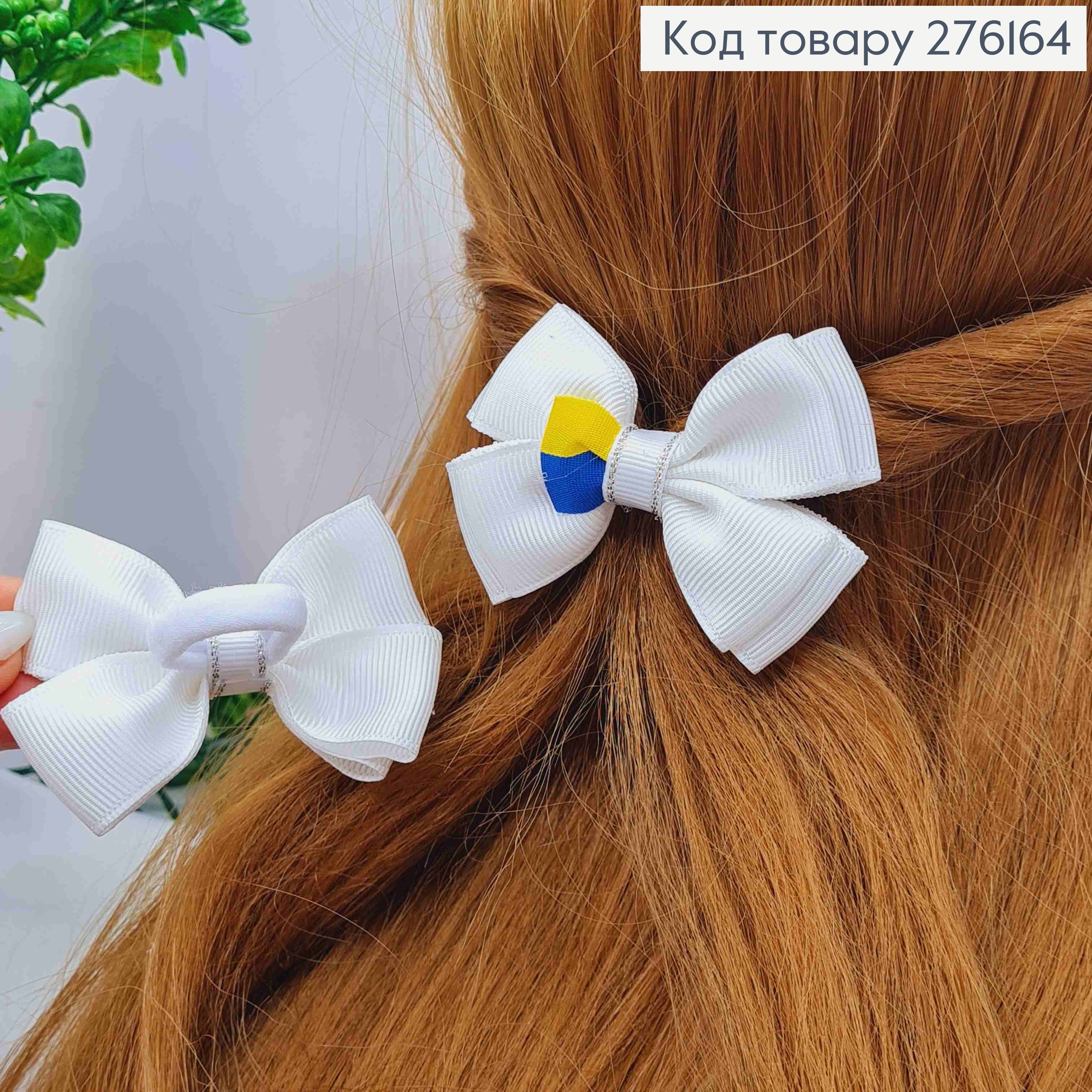 Бант БЕЛЫЙ с люрексом и желто-синей лентой, на резинке, ткань репс, размер 7*6см, Украина.