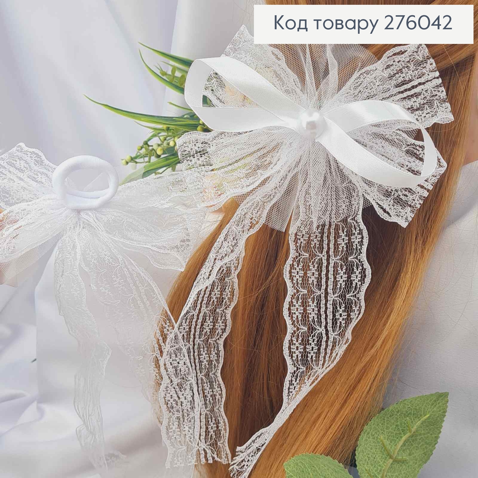 Бант БЕЛЫЙ из СЕТИ (нежный) на резинке, размер 15см+хвостики 20см, ручная работа, Украина.