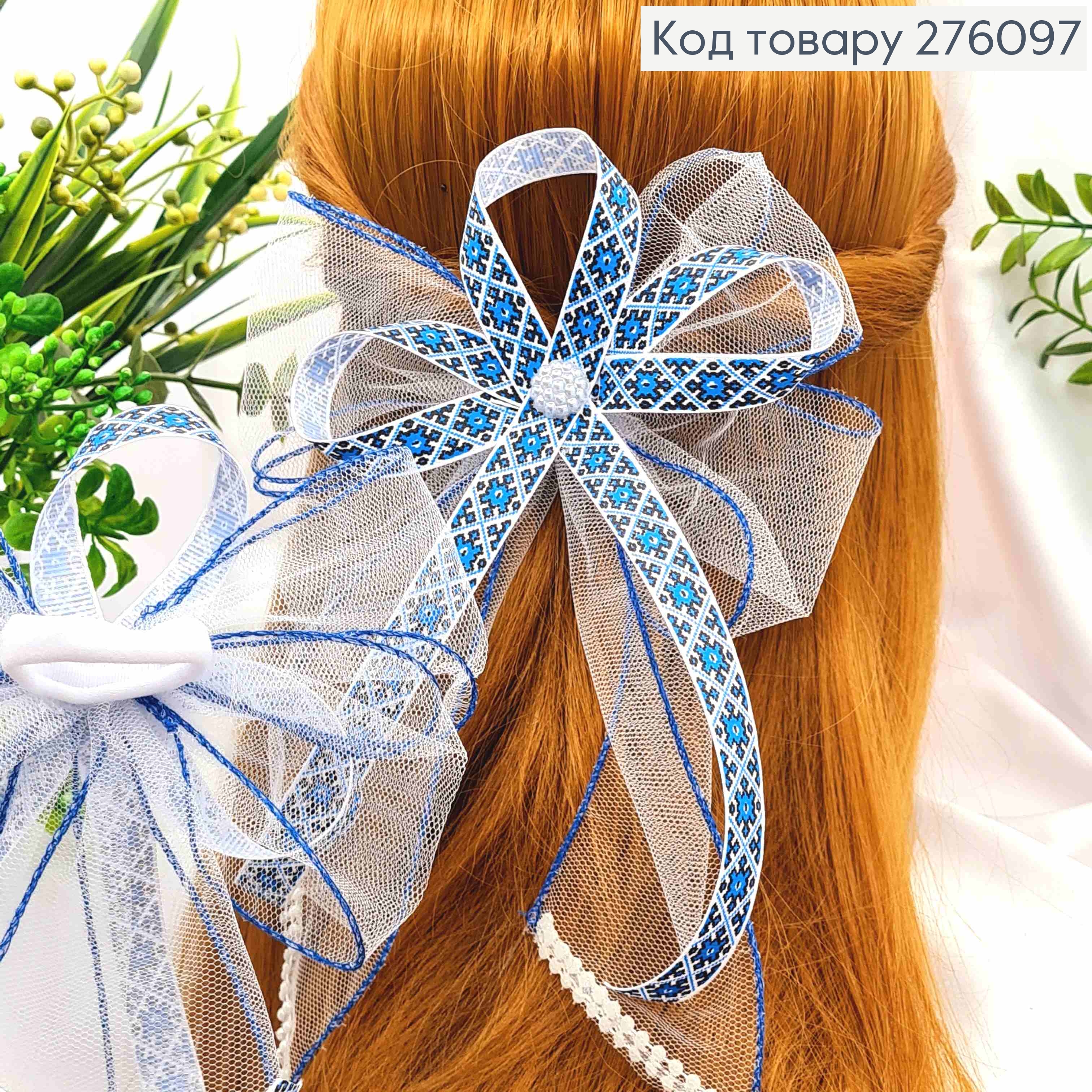 Бант с кружевом СИНЕ-БЕЛЫЙ на заколке "стрела", размер 14*20см, ручная работа, Украина. 276179 фото