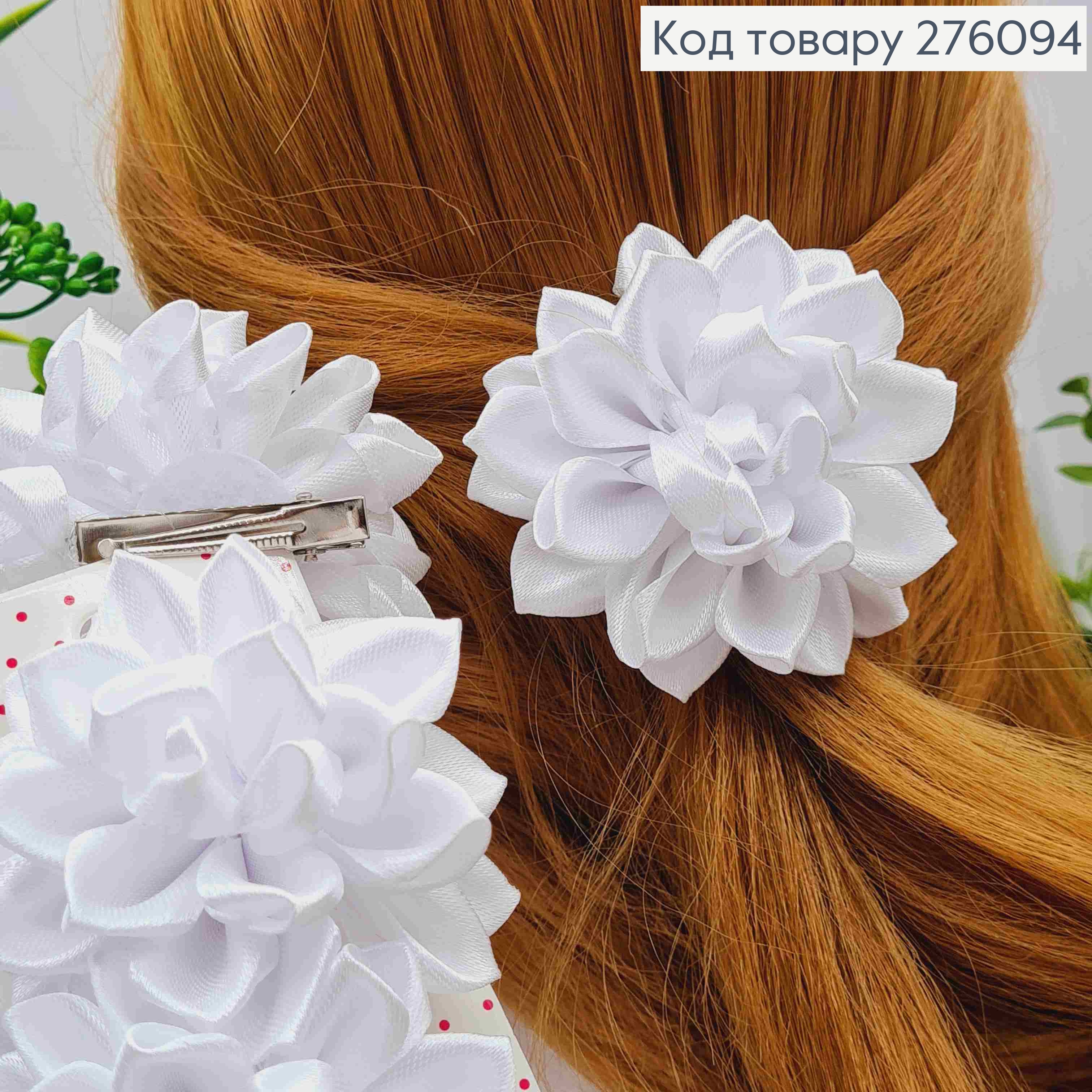 Бант БЕЛОГО цвета "Хризантема", на заколке 4см, размер 7см, ткань атлас, ручная работа, Украина.