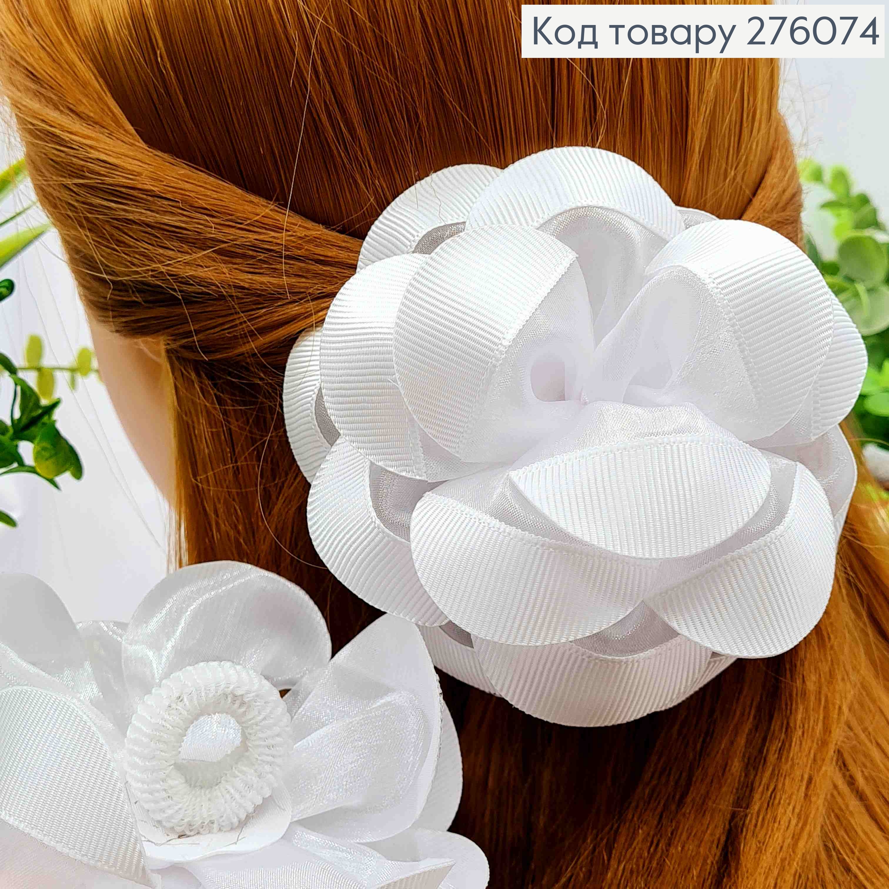 Бант БЕЛОГО цвета, на резинке, ткань органза + репс, 11см, ручная работа