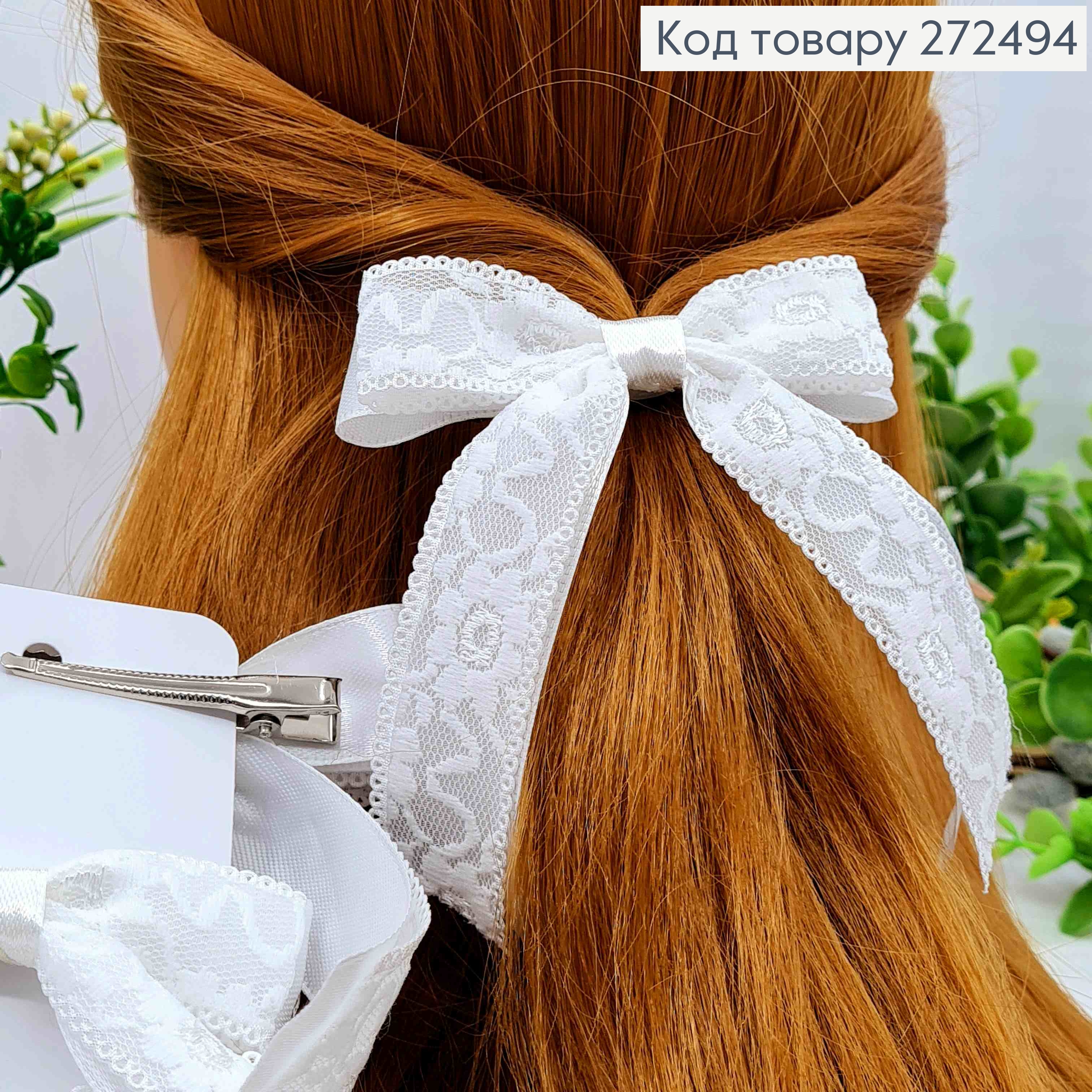 Бант БЕЛОГО цвета, на заколке 5,5см, ткань кружево+атлас, размер 15*25см, Украина. 276158 фото