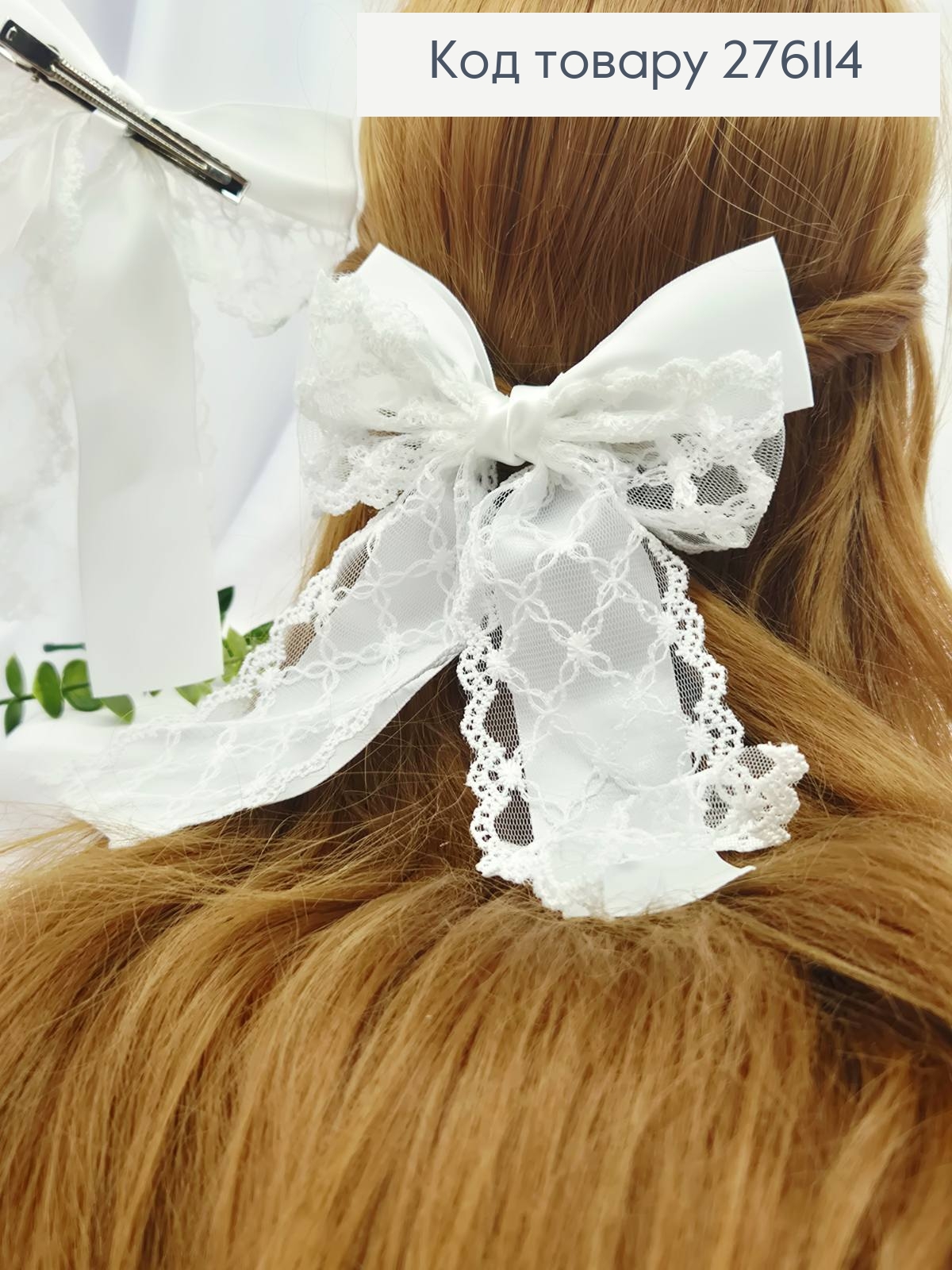 Бант БЕЛОГО цвета, на заколке 5,5см, ткань кружево+атлас, размер 15*25см, Украина. 276158 фото