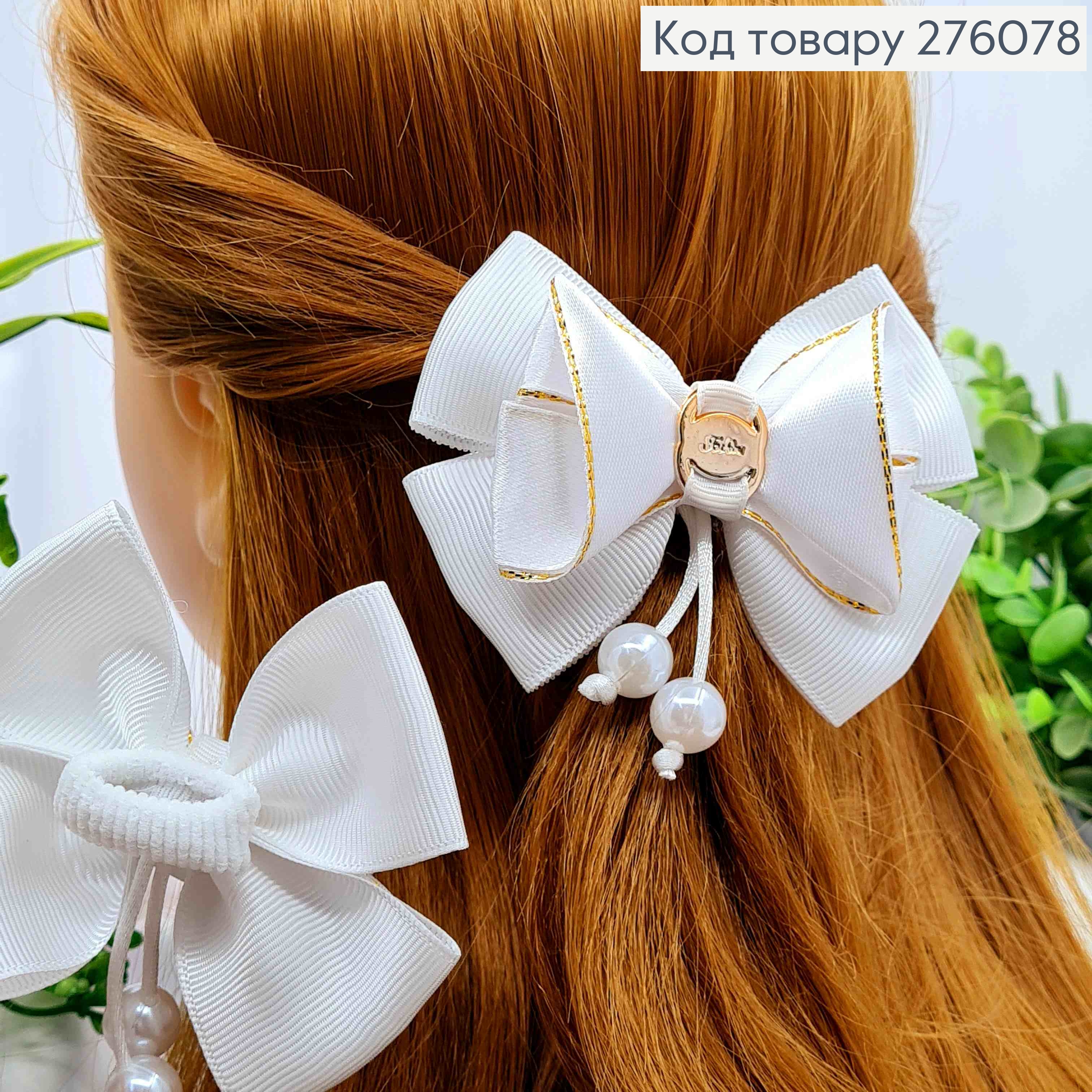 Бант атласный с бусинками, БЕЛЫЙ на резинке, размер 12*20см, ручная работа, Украина. 276166 фото
