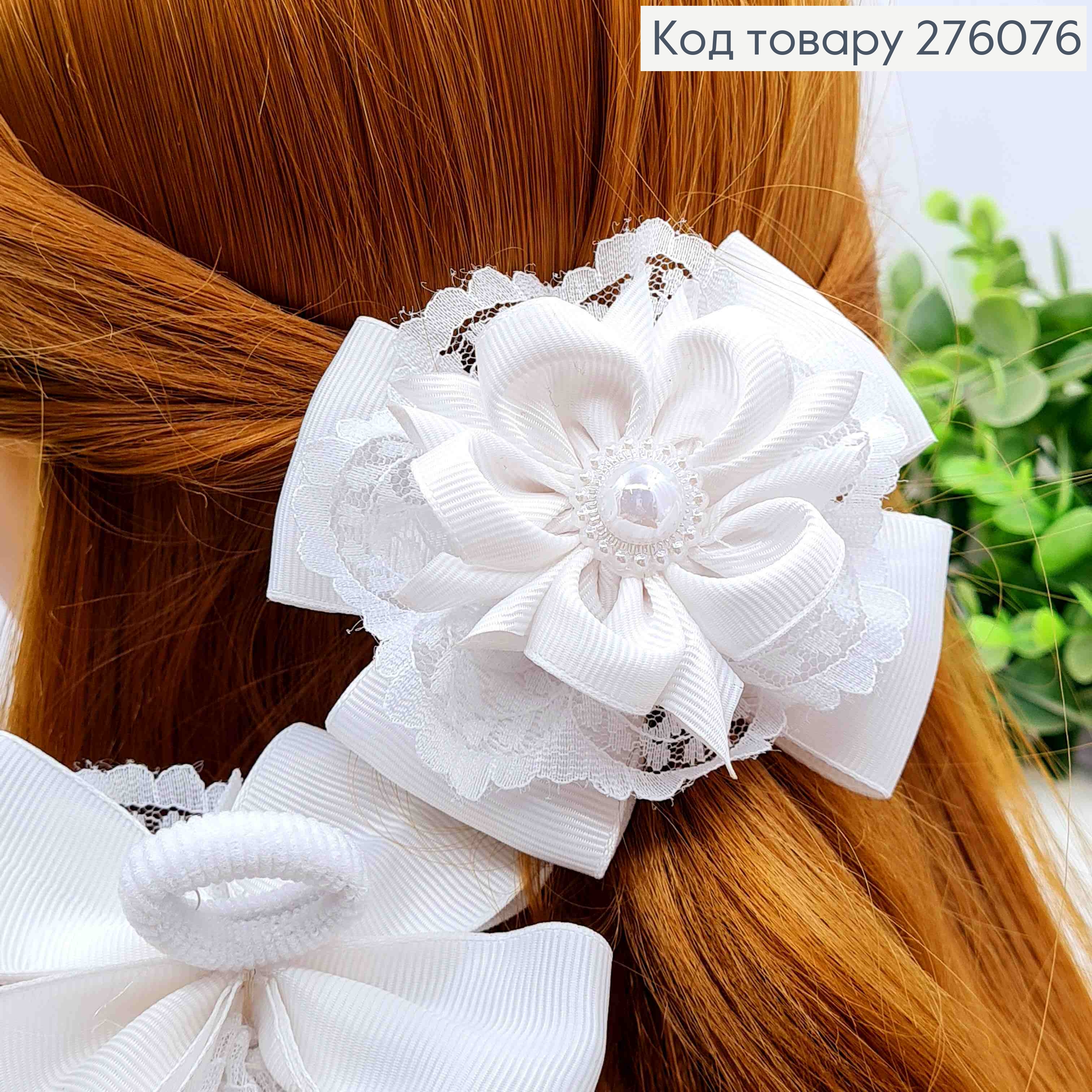 Бант БЕЛОГО цвета, на заколке 5,5см, ткань кружево+атлас, размер 15*25см, Украина. 276158 фото