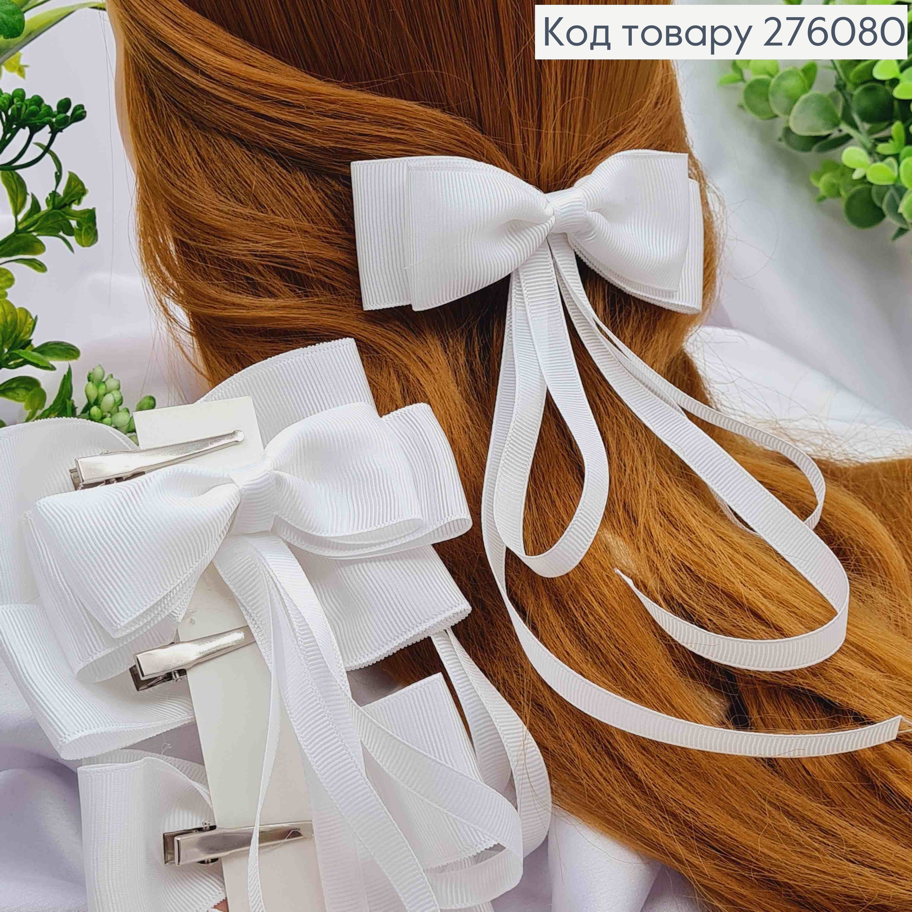 Бант БЕЛОГО цвета с Хвостом, на заколке 5,5см, ткань репс, размер 12,5*23см, ручная работа