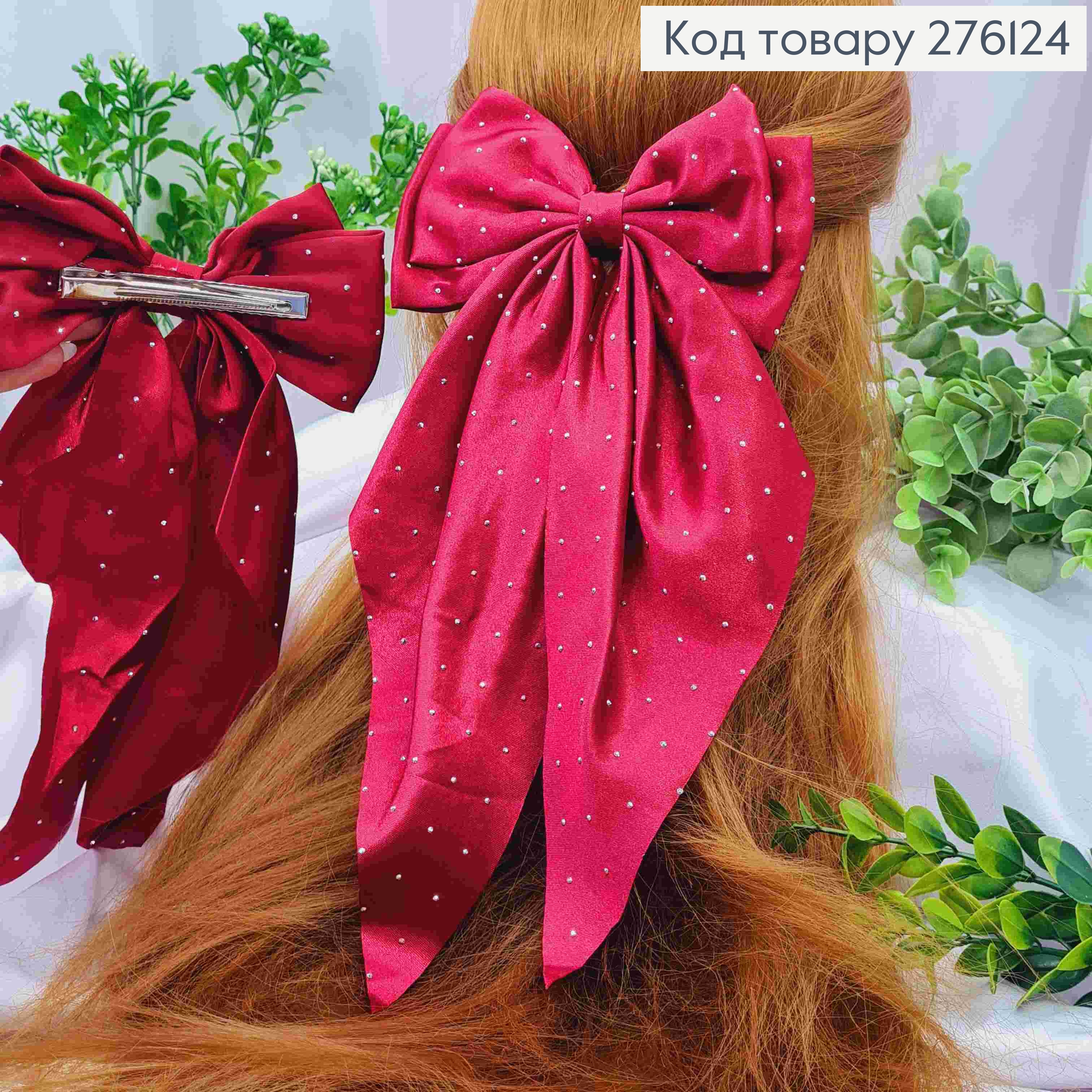 Бант КРАСНОГО цвета со стразами, на заколке 7,5см, ткань атлас, разм 14,5*31см