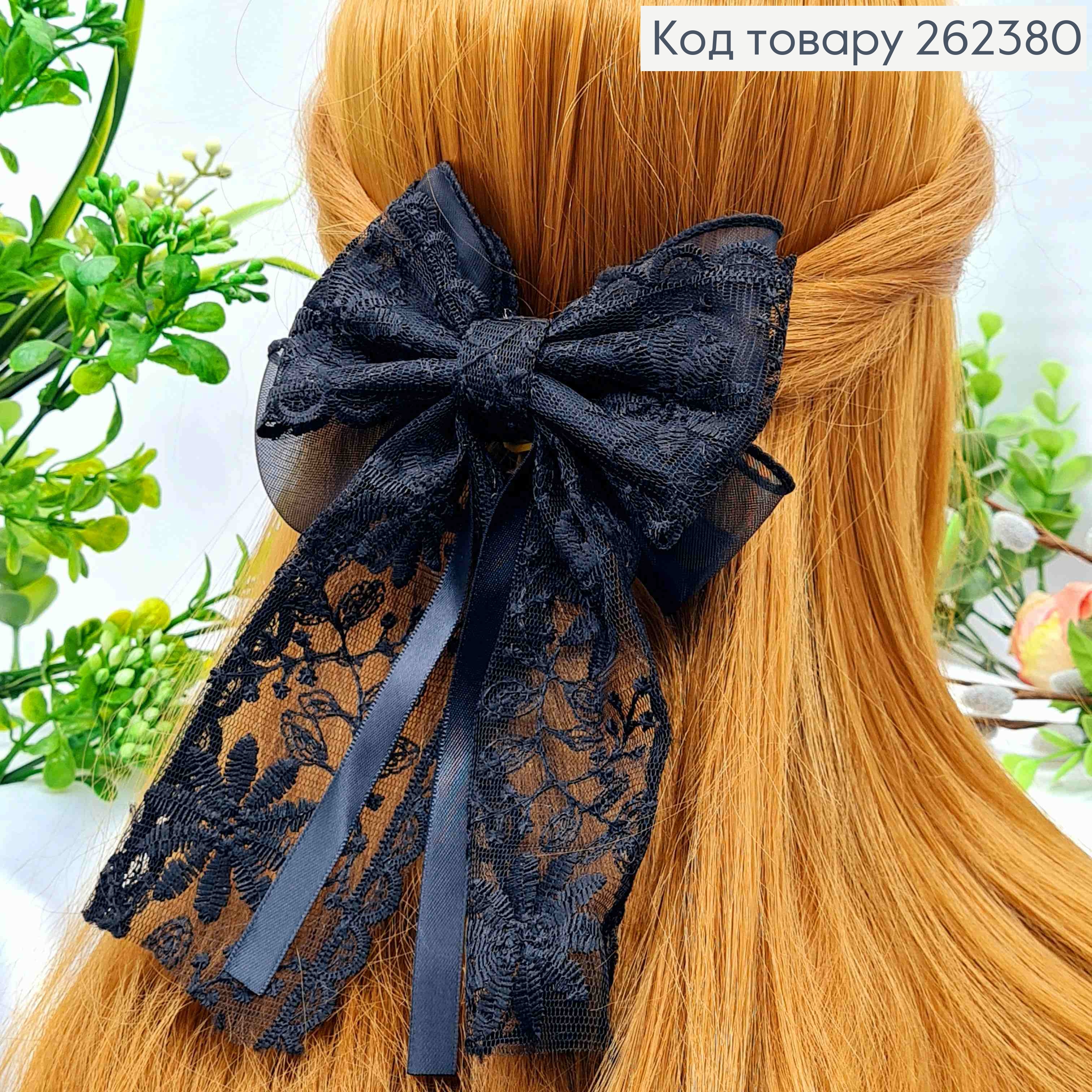 Бант атласный с кружевом ЧЕРНО-БЕЛЫЙ на заколке "стрела", размер 13*20см, ручная работа, Украина. 276167 фото