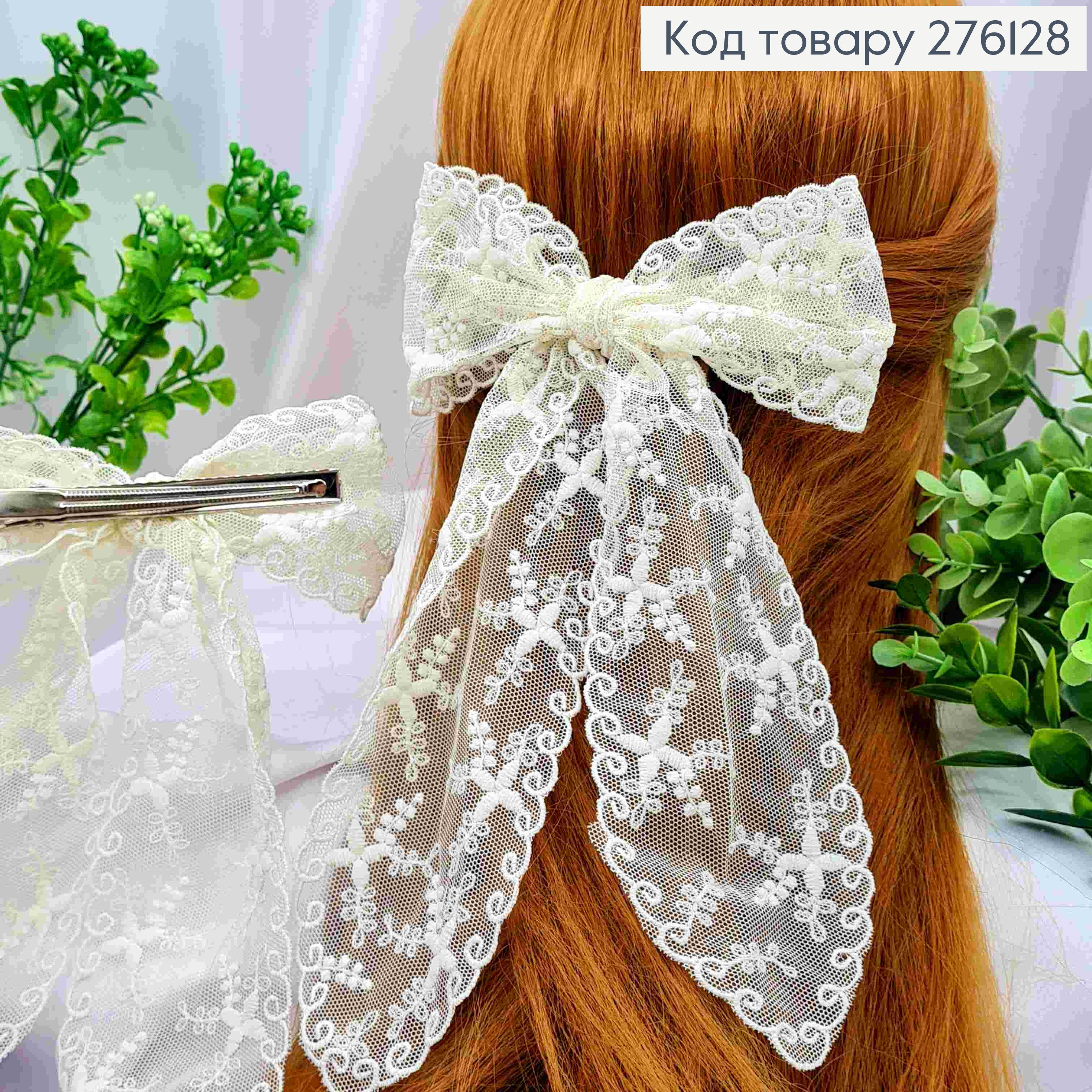 Бант БЕЛОГО цвета, на заколке 5,5см, ткань кружево+атлас, размер 15*25см, Украина. 276158 фото