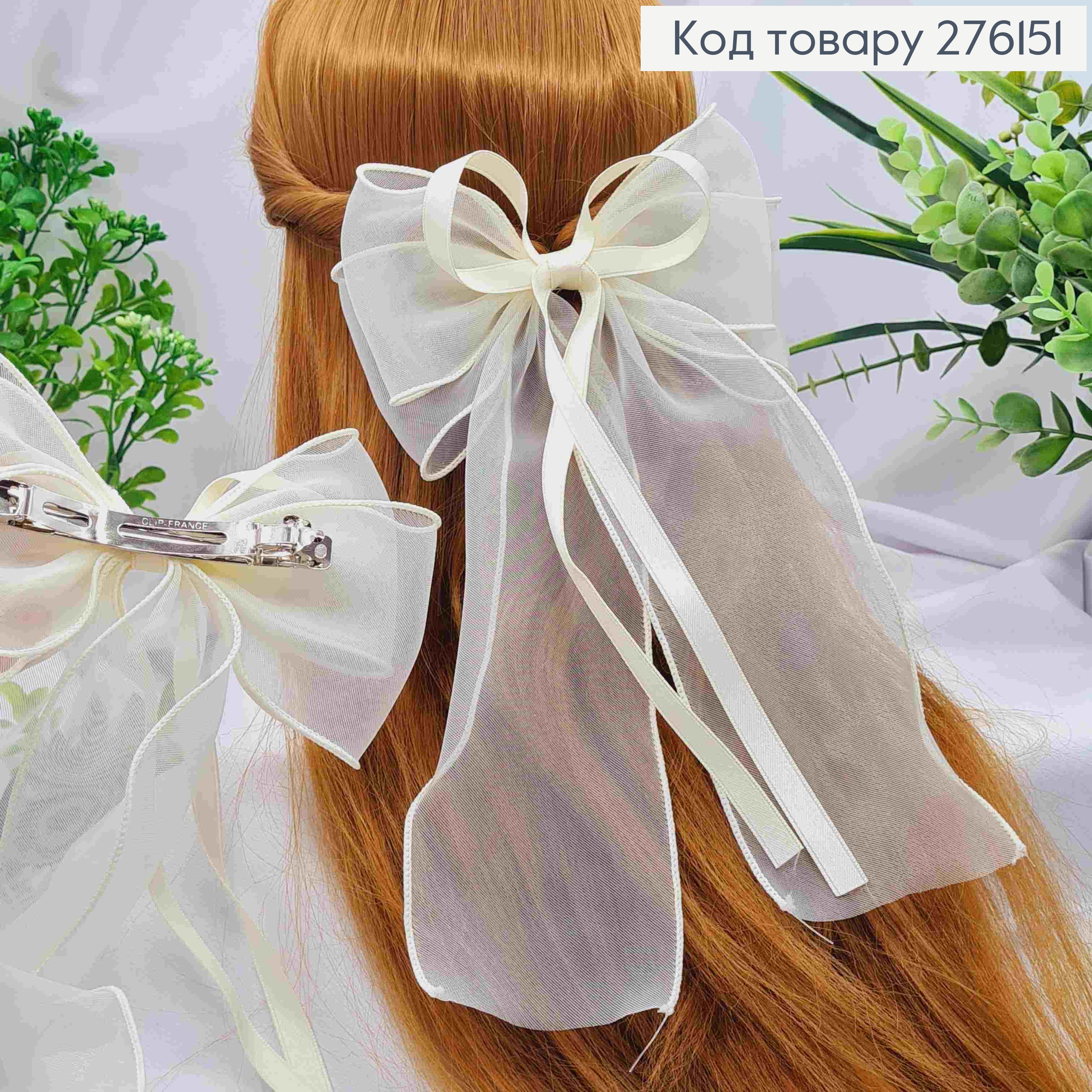 Бант КРЕМОВЫЙ, на заколке 10см, ткань органза+атлас, размер 16*28см, ручная работа