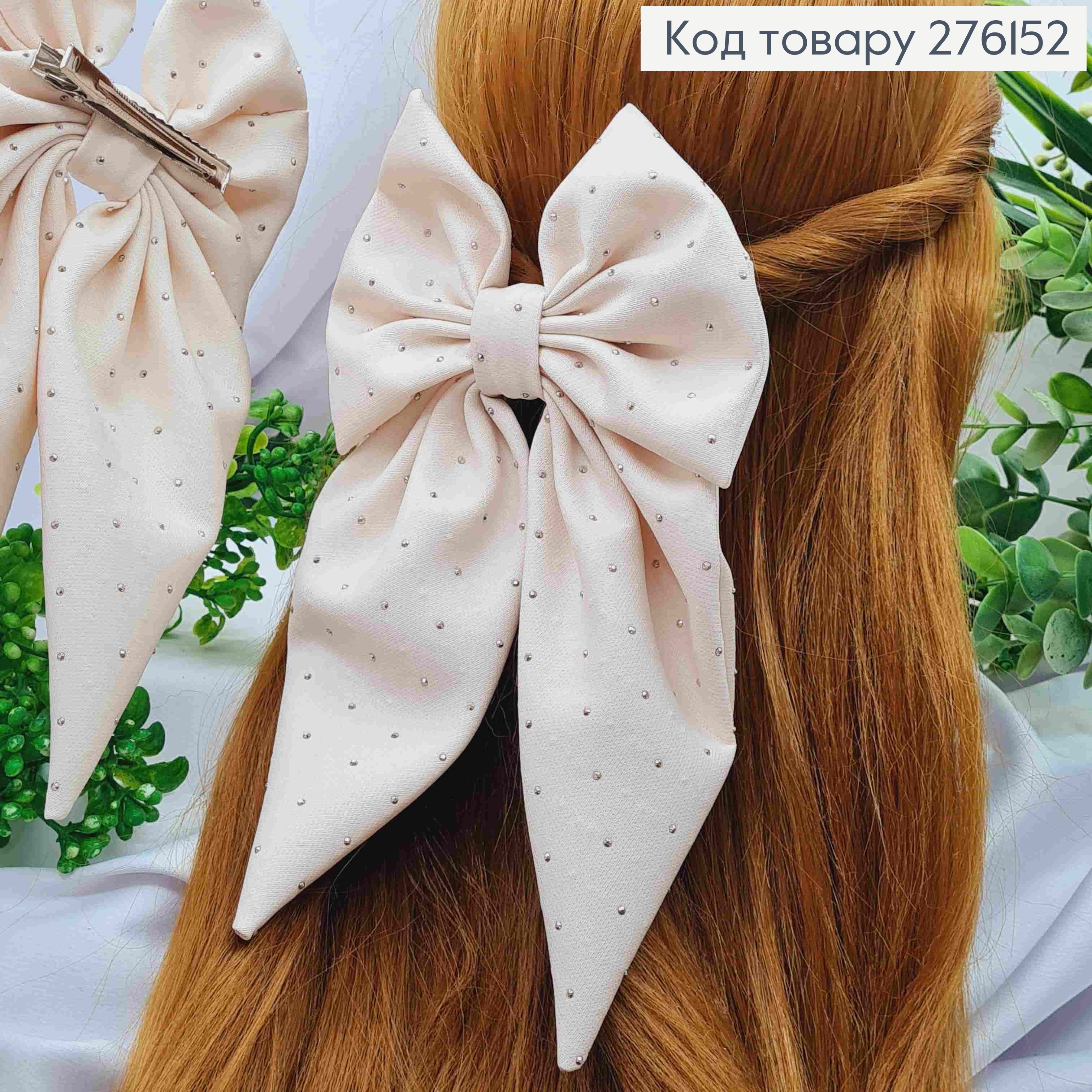 Бант КРЕМОВЫЙ со стразами, на заколке 6,5см, ткань креп, размер 13*24см, ручная работа