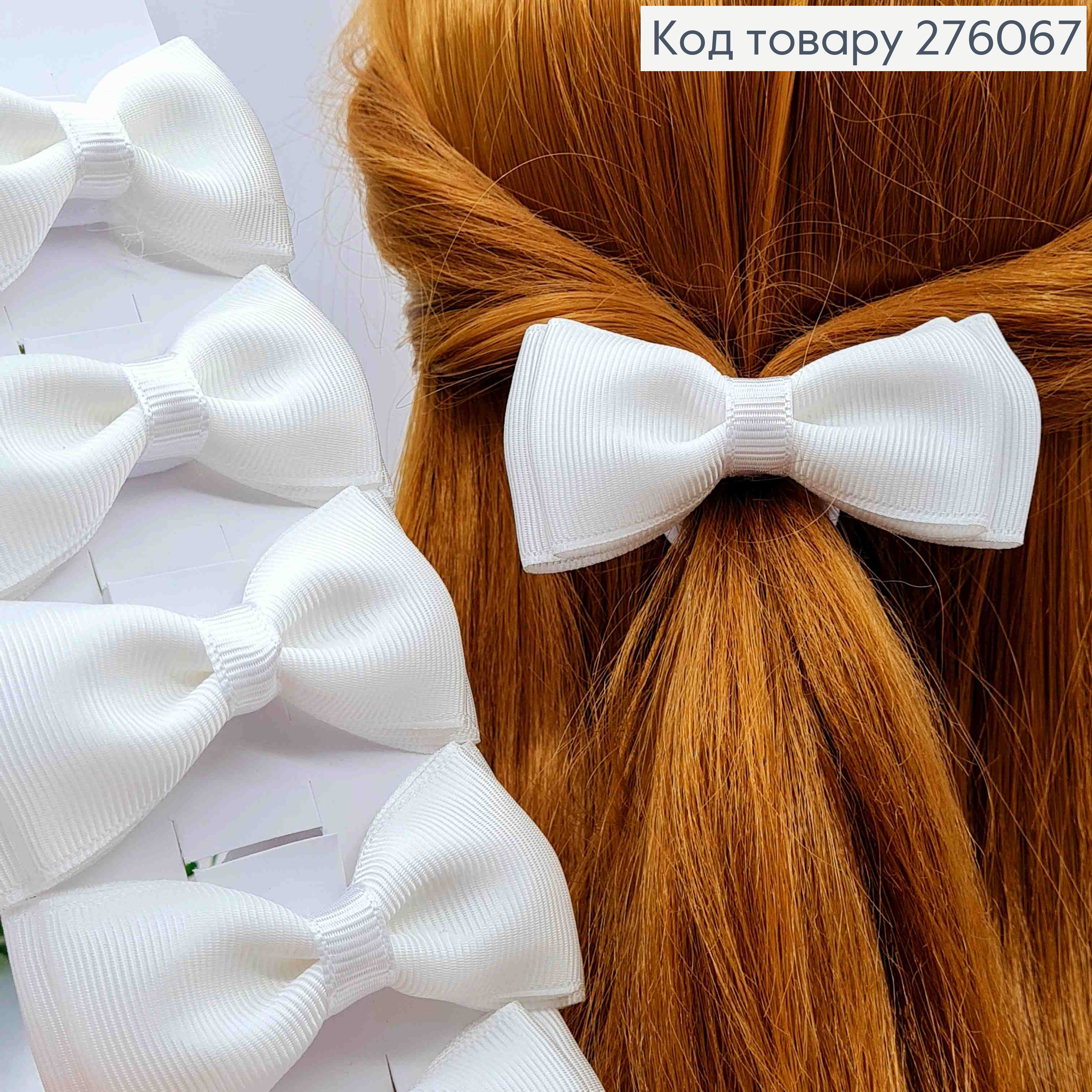 Бант БЕЛОГО цвета, на заколке 5,5см, ткань кружево+атлас, размер 15*25см, Украина. 276158 фото
