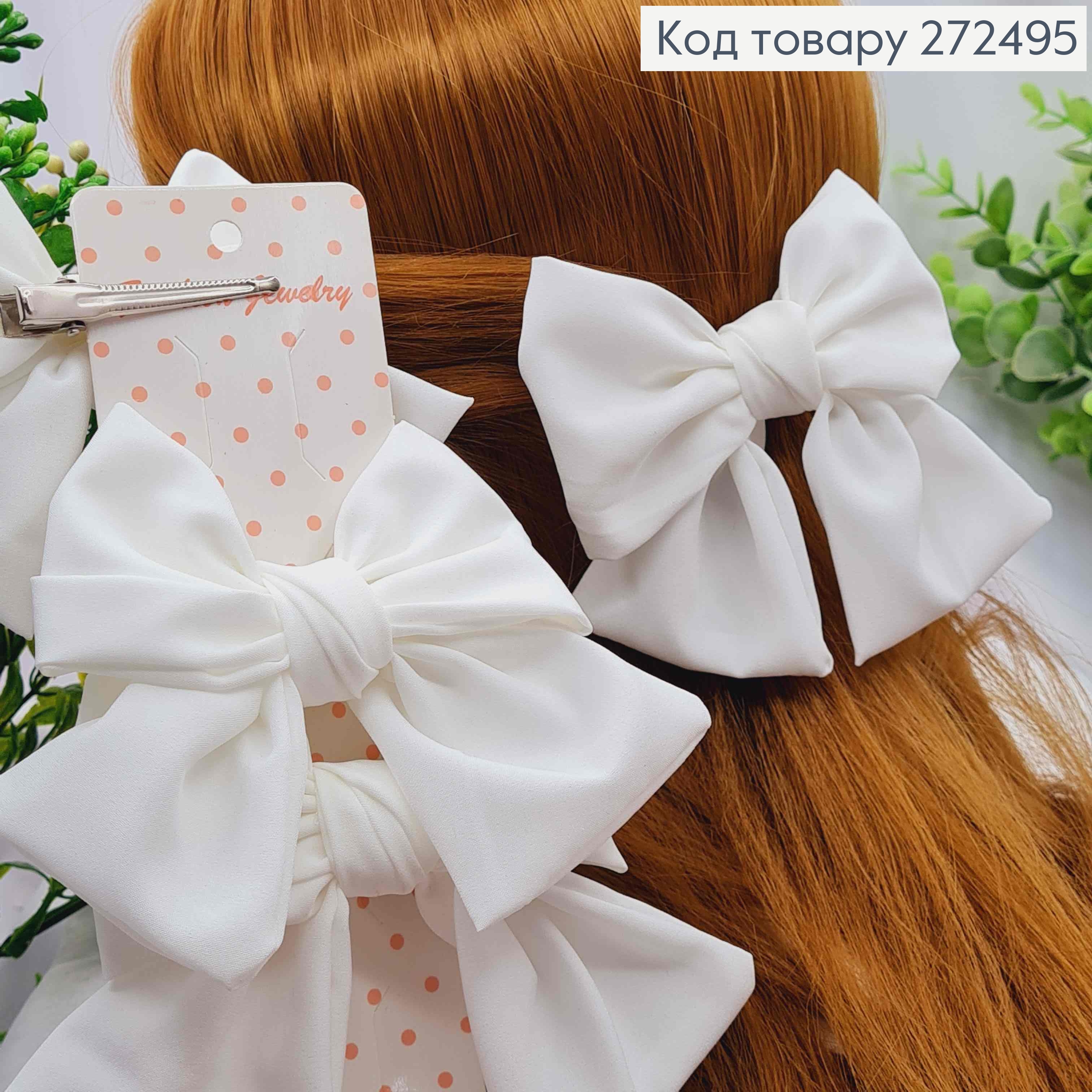 Бант БЕЛОГО цвета, на заколке 5,5см, ткань кружево+атлас, размер 15*25см, Украина. 276158 фото