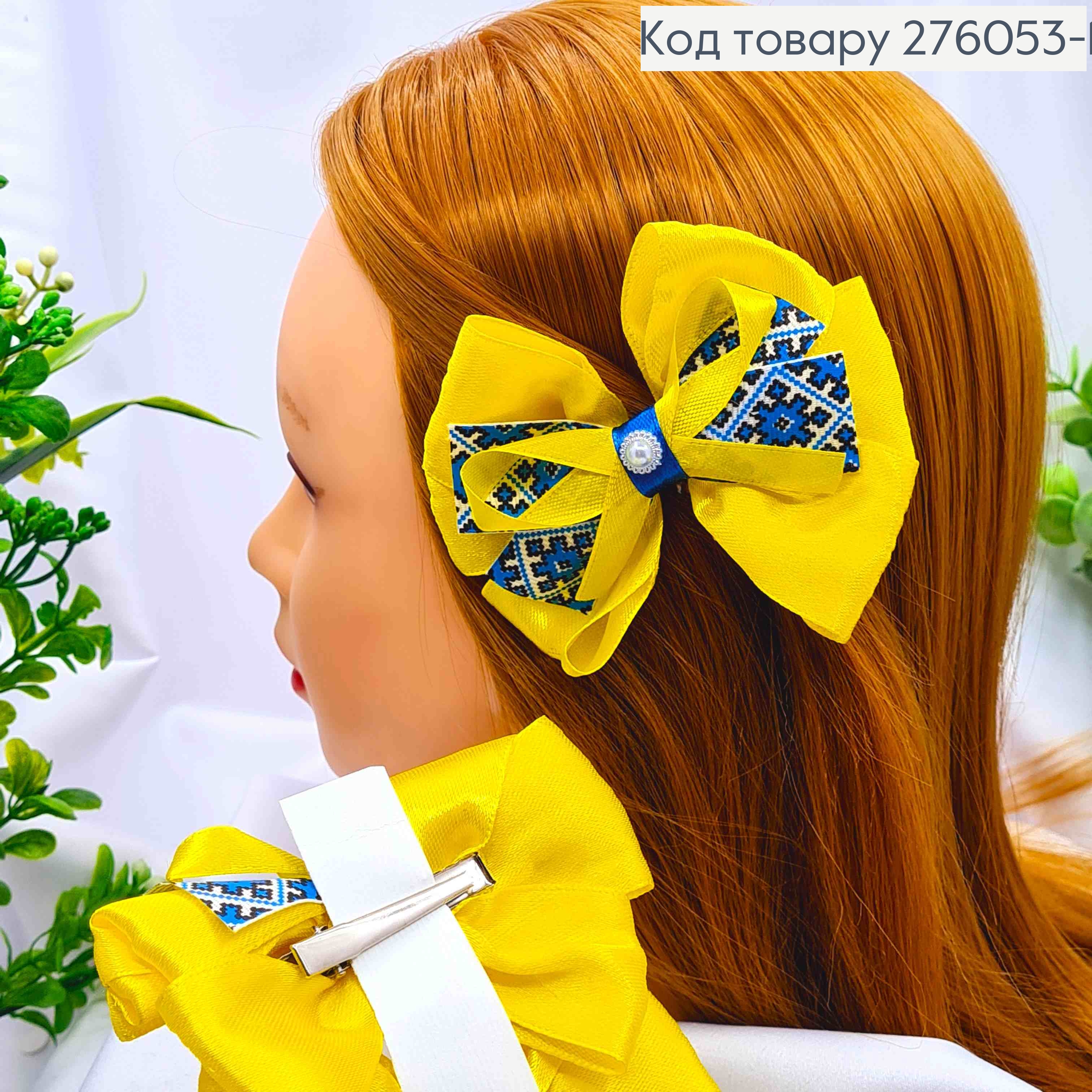 Бант на заколке (4,5см), желто-синего цвета с вышивкой, 10,5*9см, ручная работа.