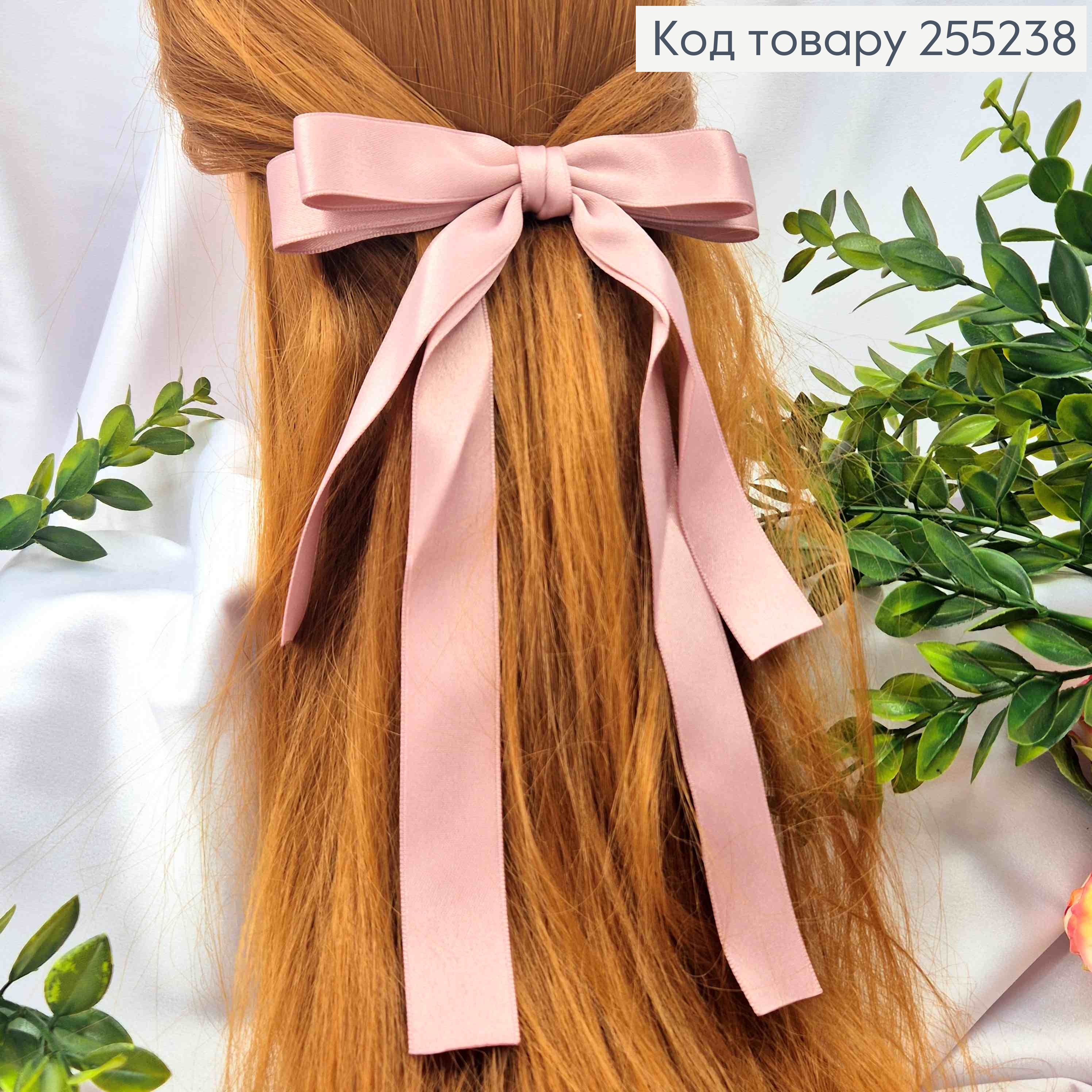 Бант РОЗОВЫЙ, атласный, двойной с длинными хвостами, на заколке автоматик, размер 15*23см.