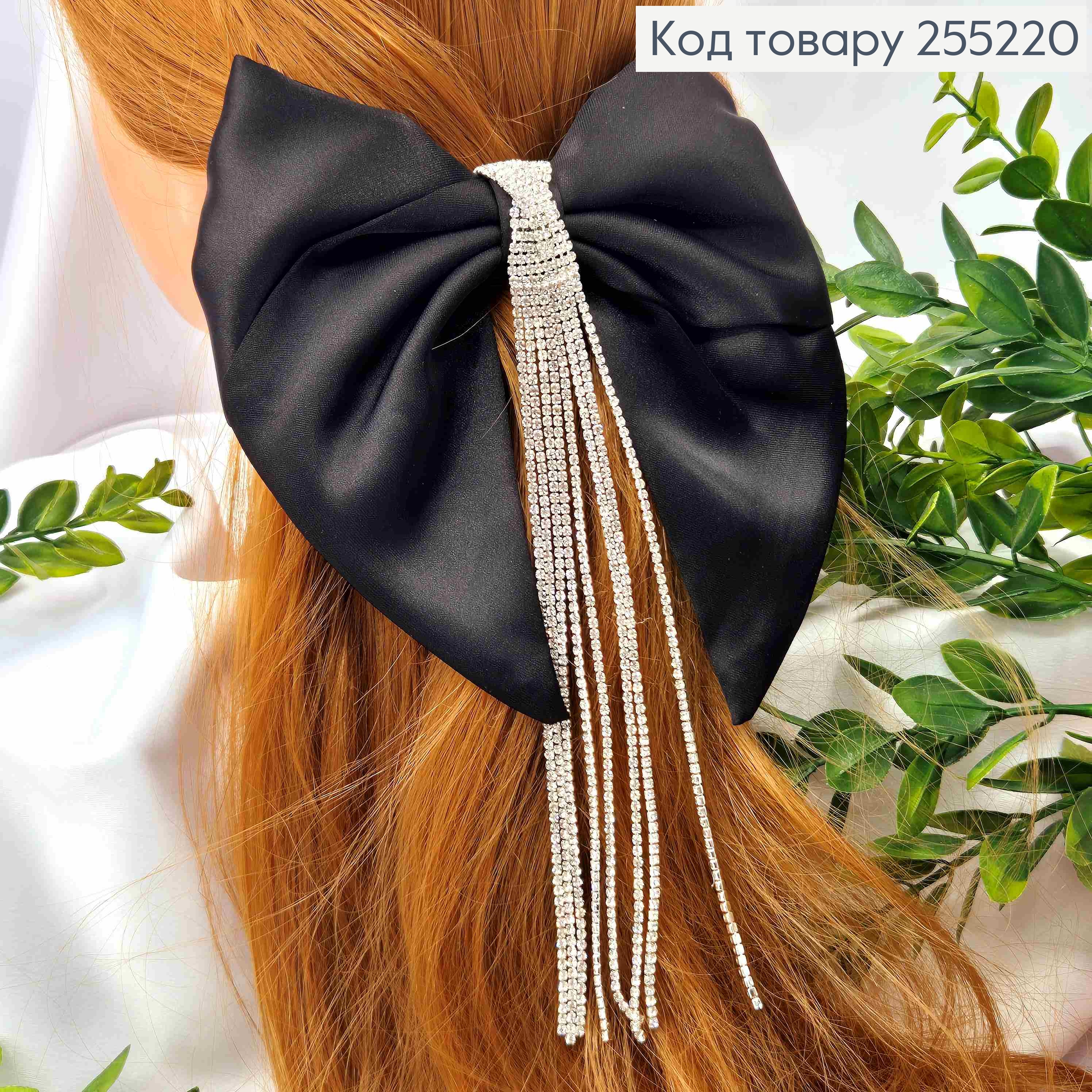 Бант ЧЕРНЫЙ со стразами, на заколке 6,5см, ткань креп, размер 13*24см, ручная работа 276153 фото