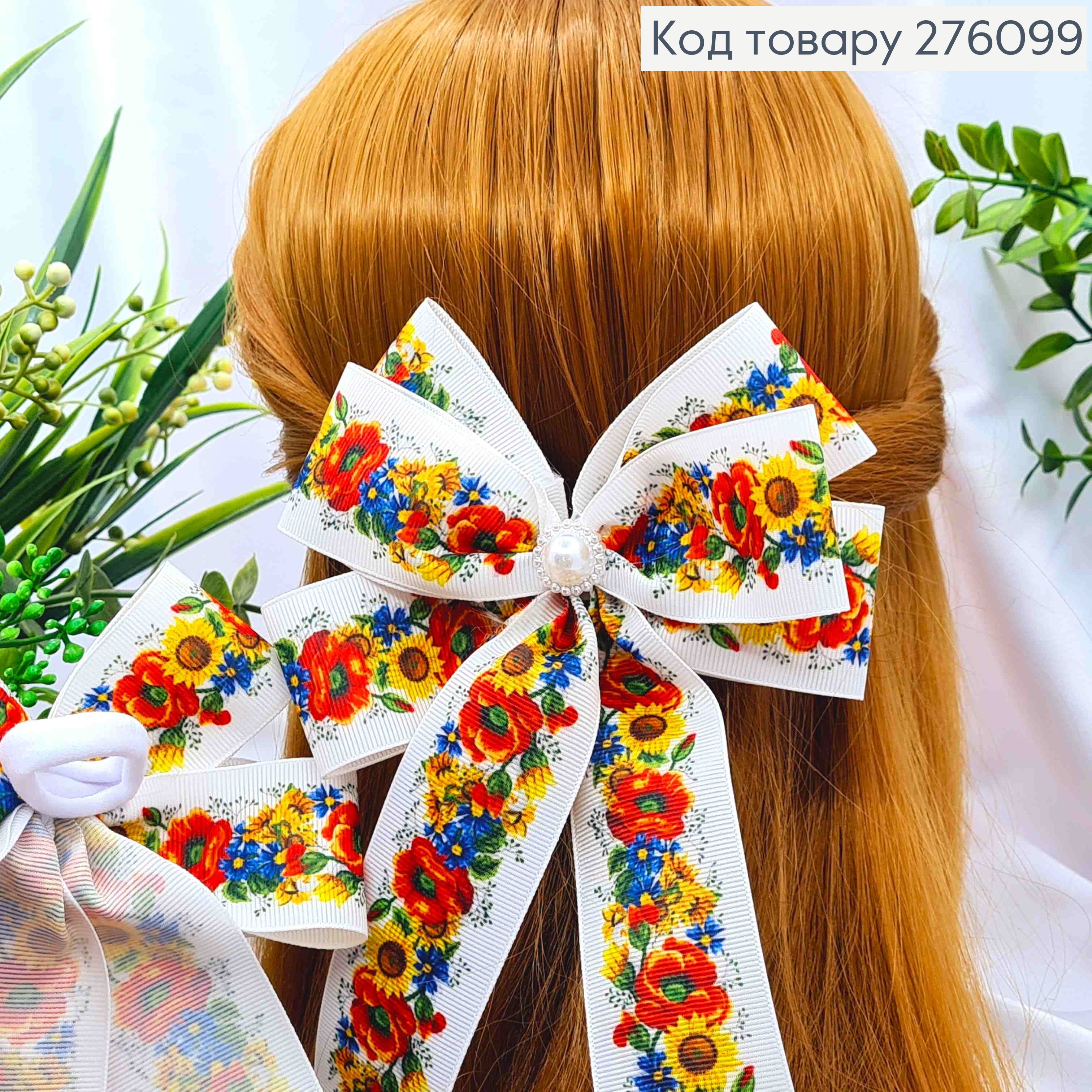 Бант атласный с бусинками, БЕЛЫЙ на резинке, размер 12*20см, ручная работа, Украина. 276166 фото