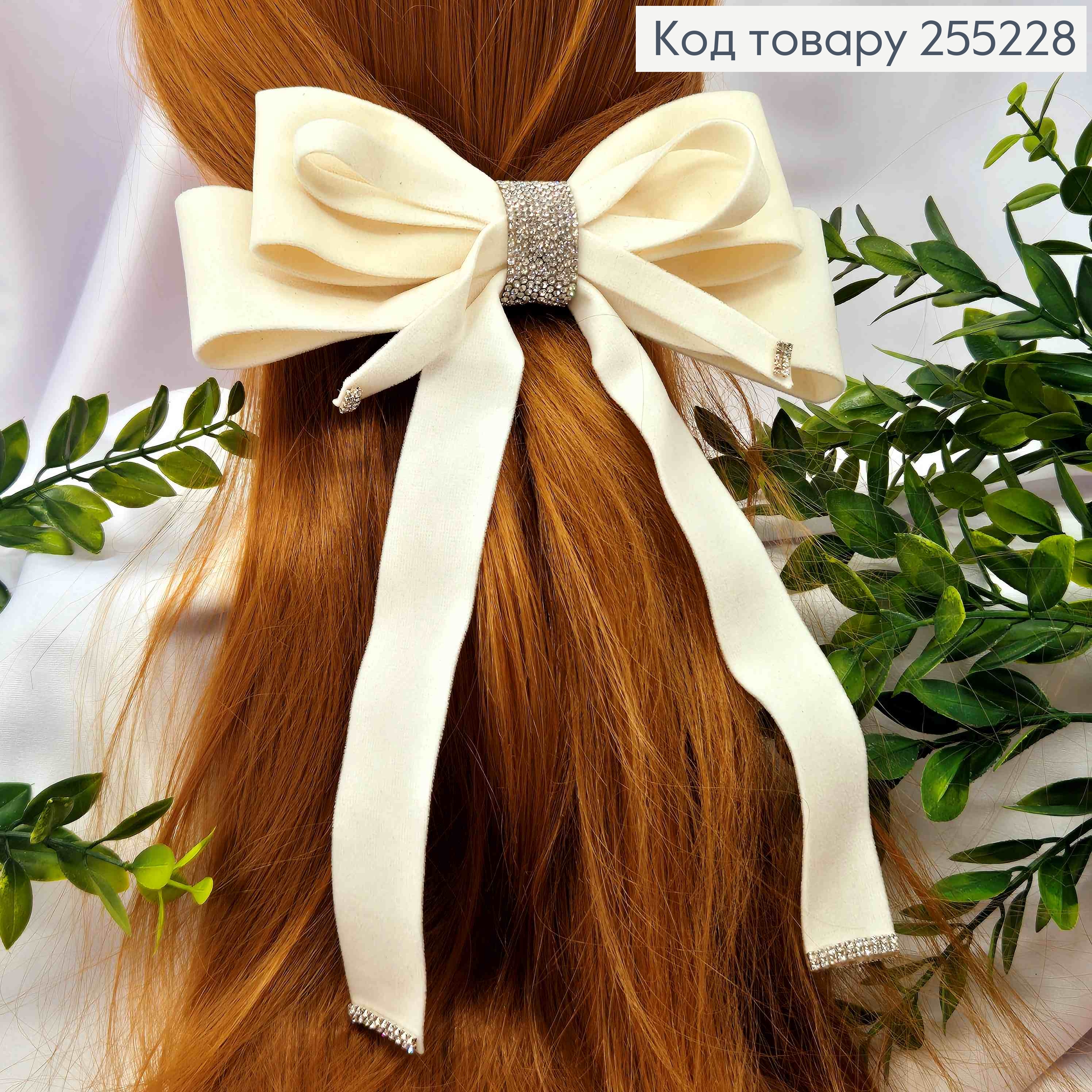 Бант с камешками, АЙВОРИ, бархатный, на заколке автоматик, размер 17*20см