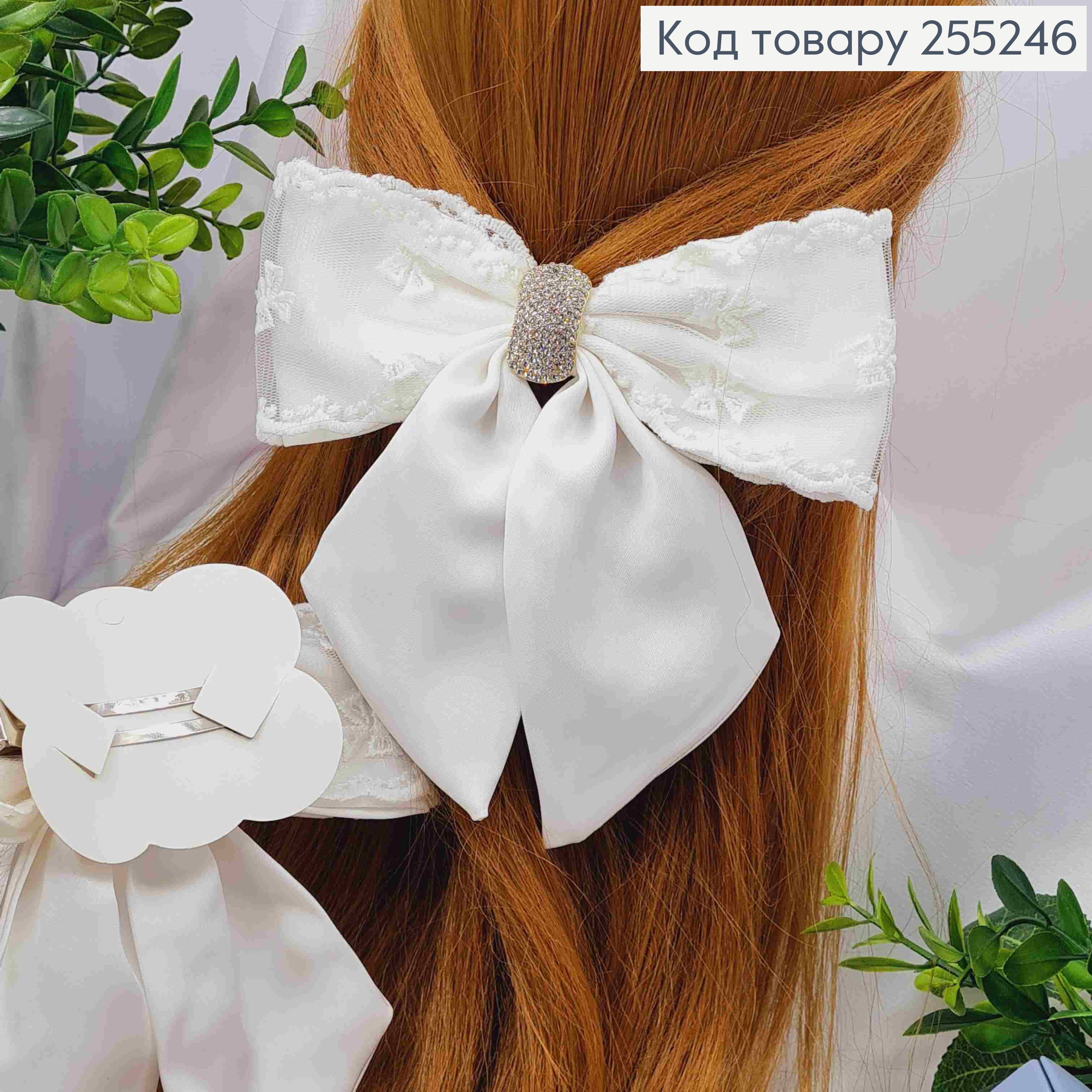 Бант БЕЛОГО цвета, на заколке 5,5см, ткань кружево+атлас, размер 15*25см, Украина. 276158 фото