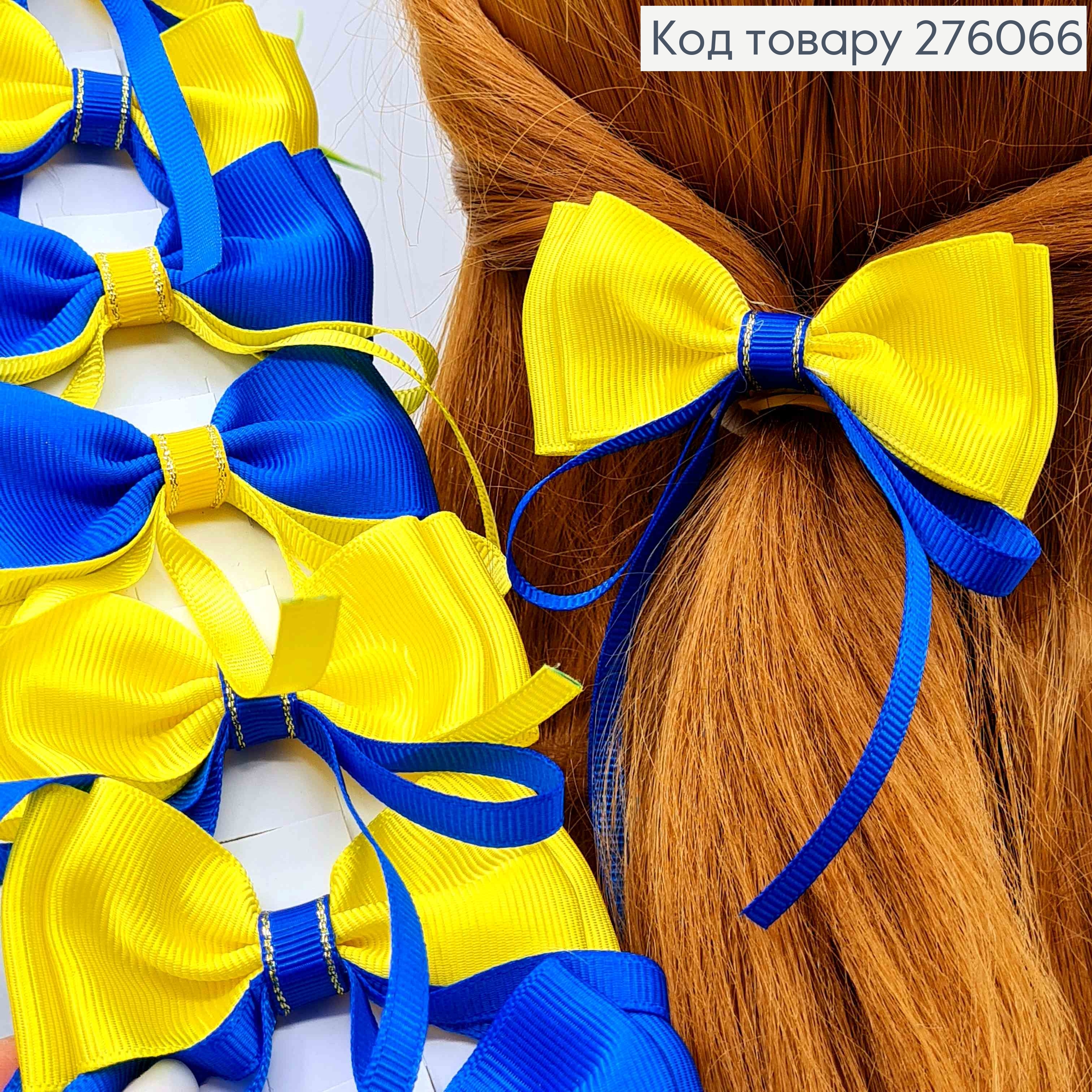 Бант ЖЕЛТО-СИНИЙ с хвостом, на резинке, ткань репс, размер 8,5*4+8см, ручная работа