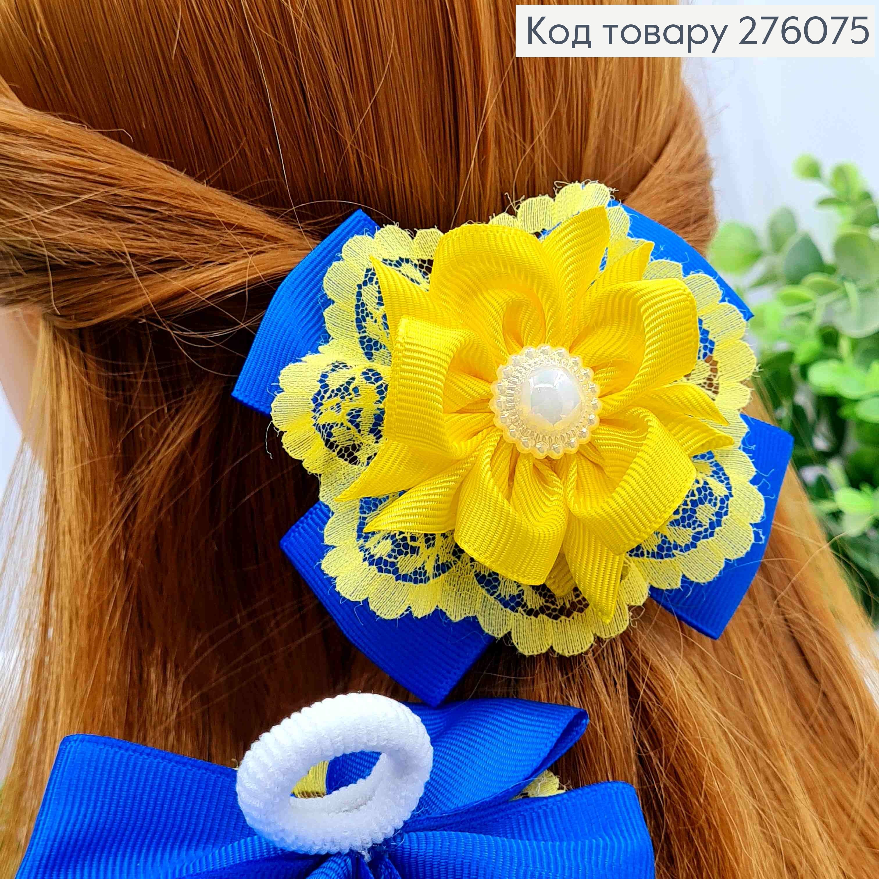 Резинка, БАНТ репсовый, Желто-Синего цвета с приложением в виде цветка, 10*8см, Ручная работа 276008 фото
