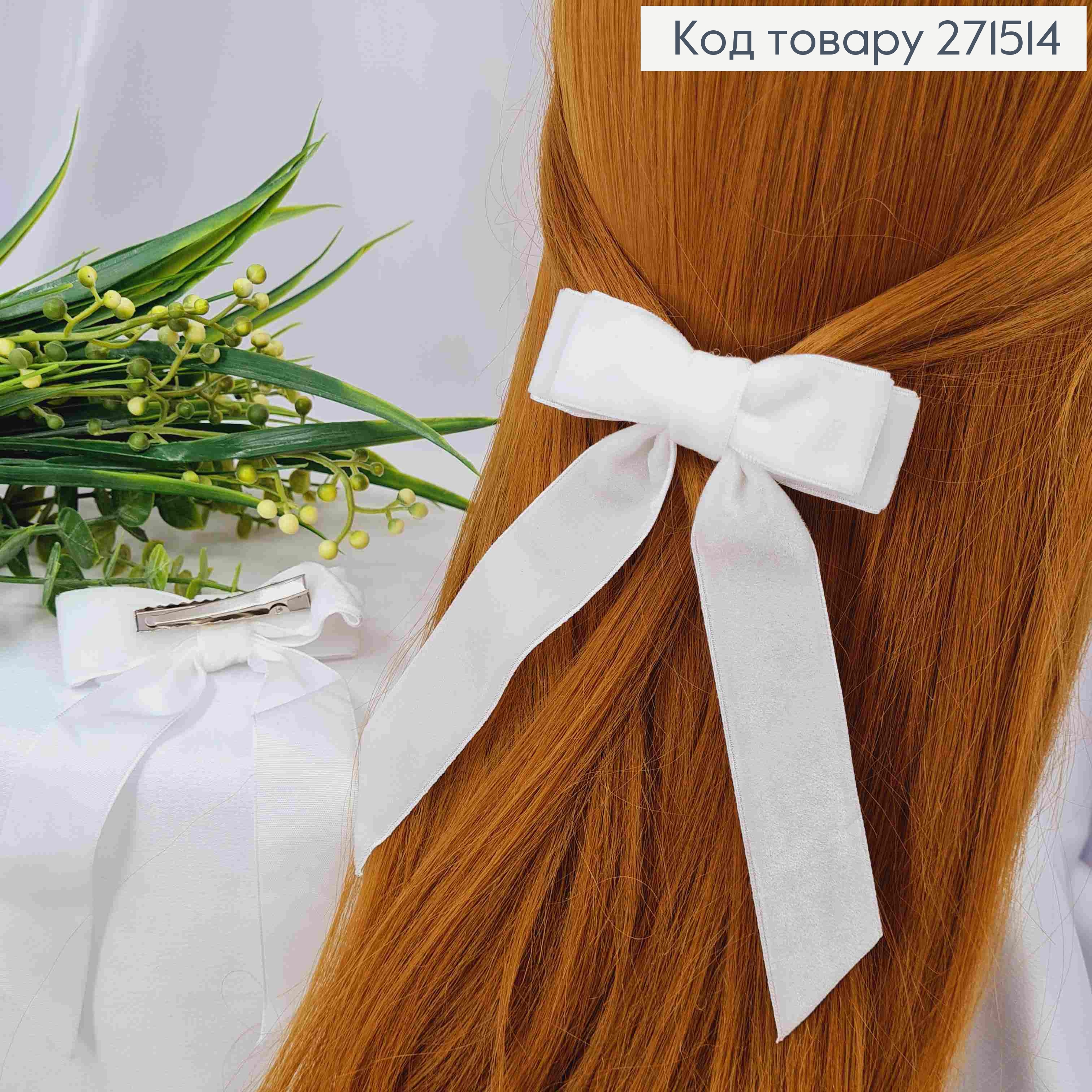 Бантик средний, велюр БЕЛЫЙ на заколке, размер 8,5*13см, ручная работа, Украина.