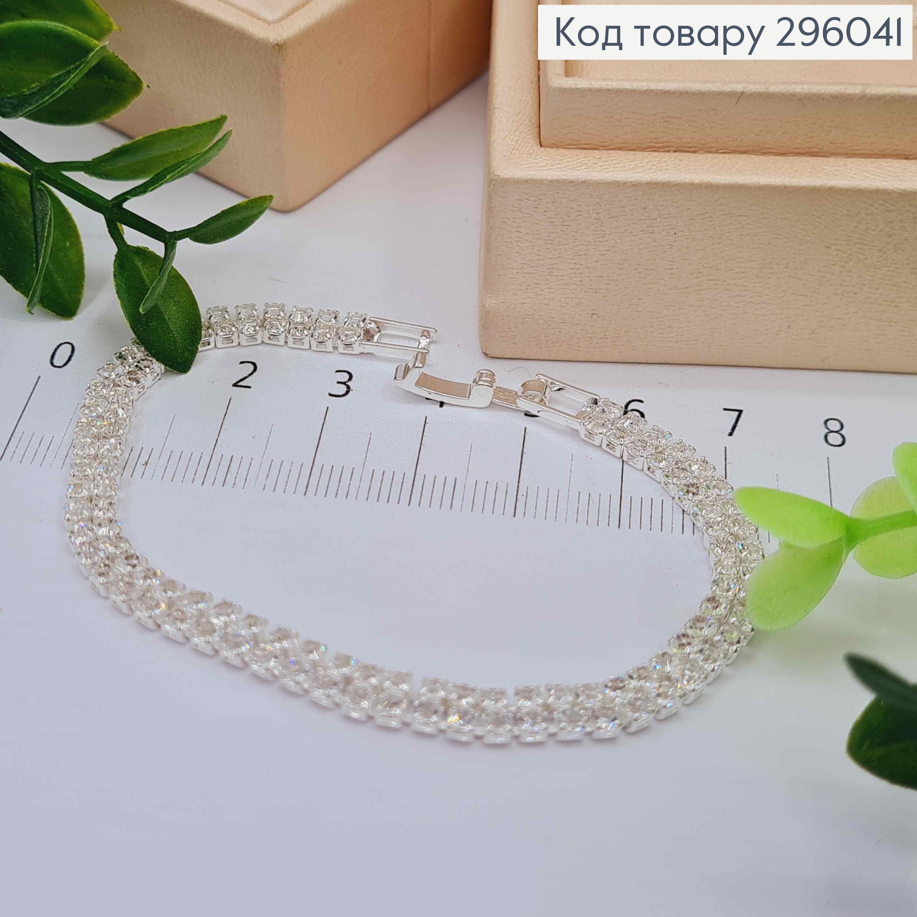 Бижутерия на руку, Браслет из Блестящих камешков в один ряд, Серебряного цвета, 18см 296039 фото
