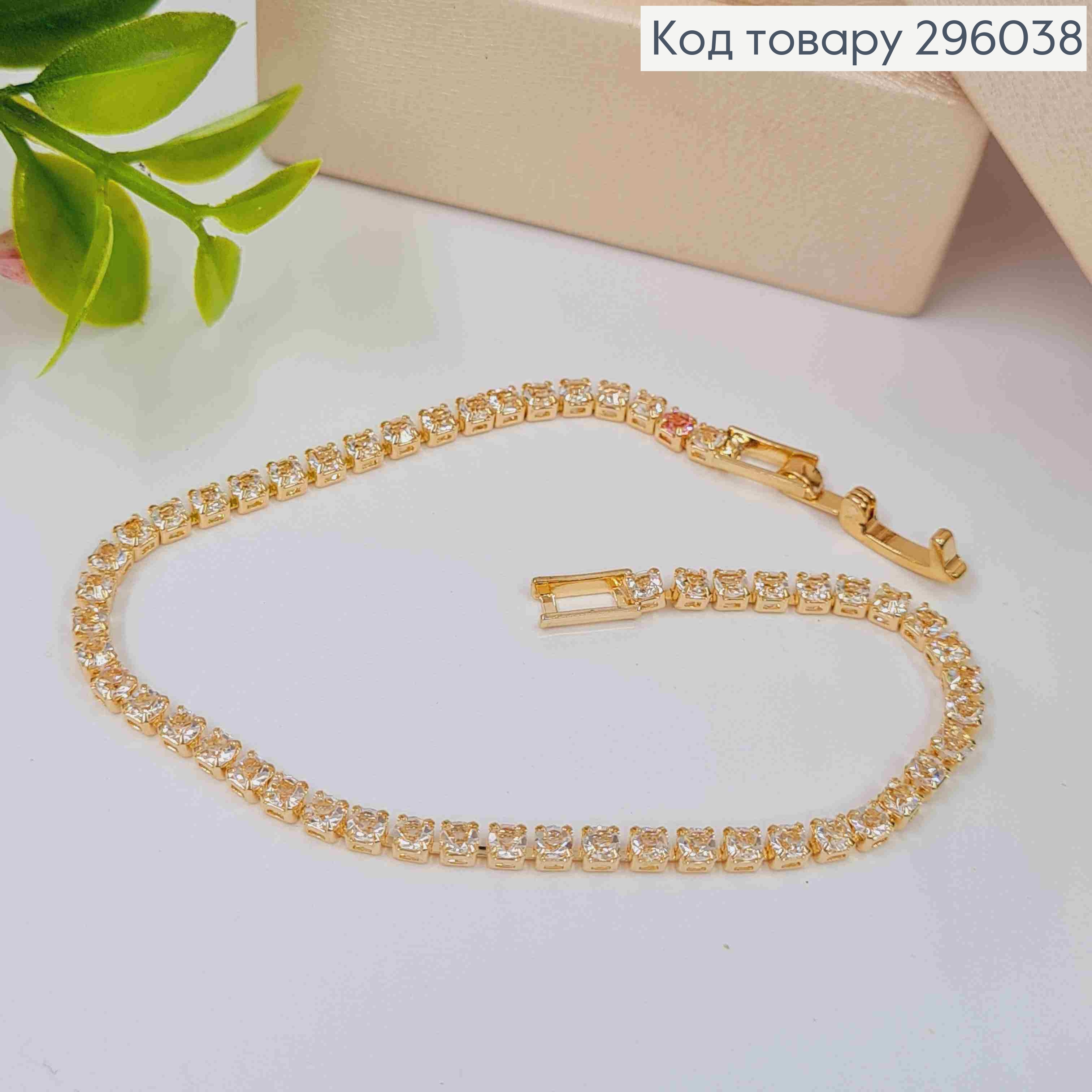Бижутерия на руку, Браслет из блестящих камней в один ряд, Золотого цвета, 18см.