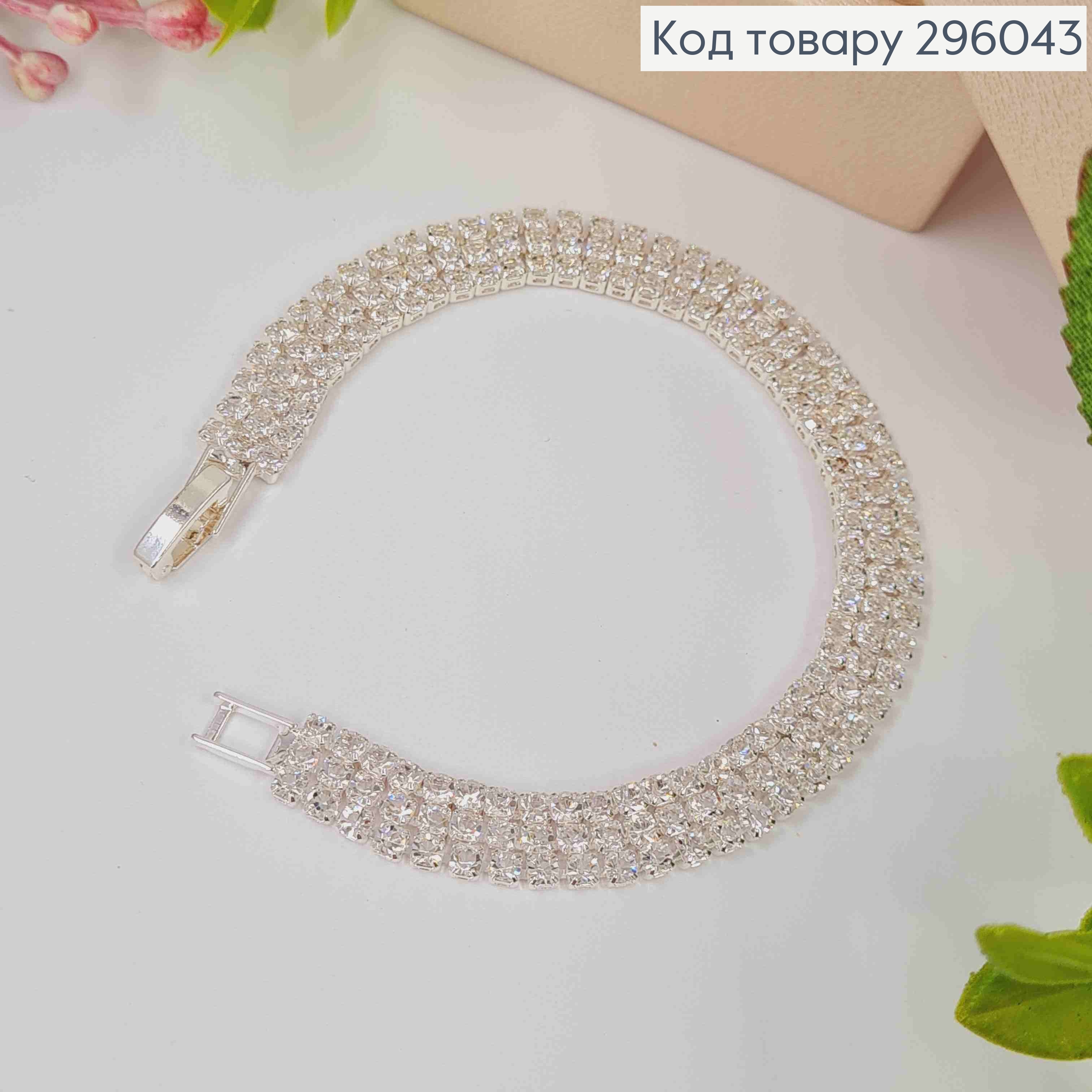 Бижутерия на руку, Серебристый Браслет с Блестящими камешками в три ряда. 296015 фото
