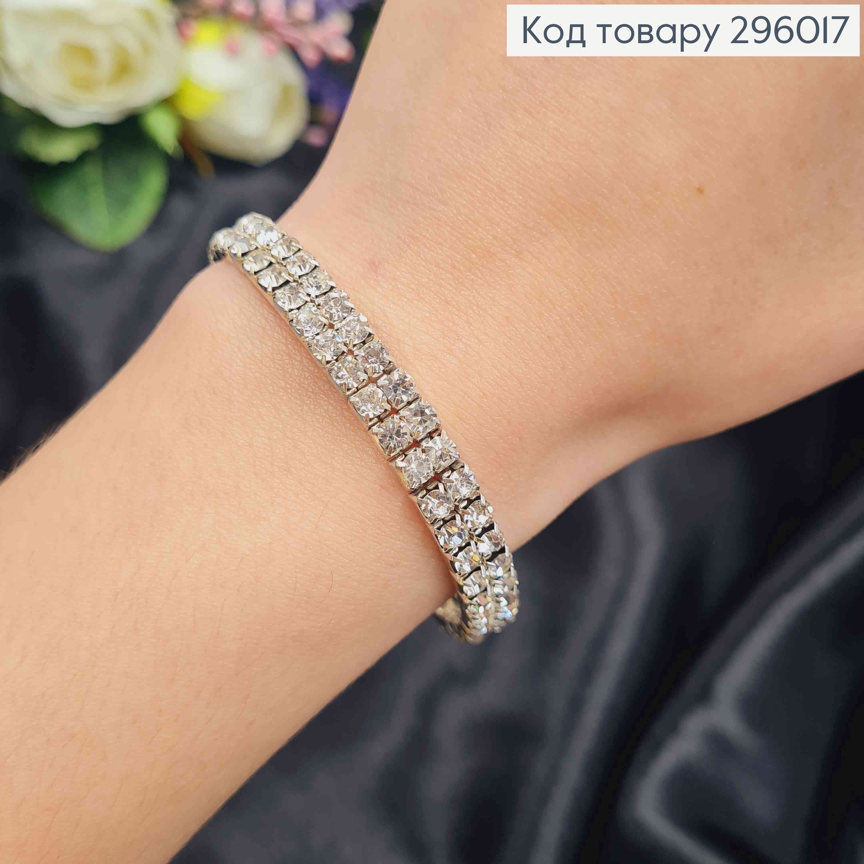 Бижутерия на руку, Браслет из Блестящих камней в два ряда, Серебряного цвета, 18см 296041 фото