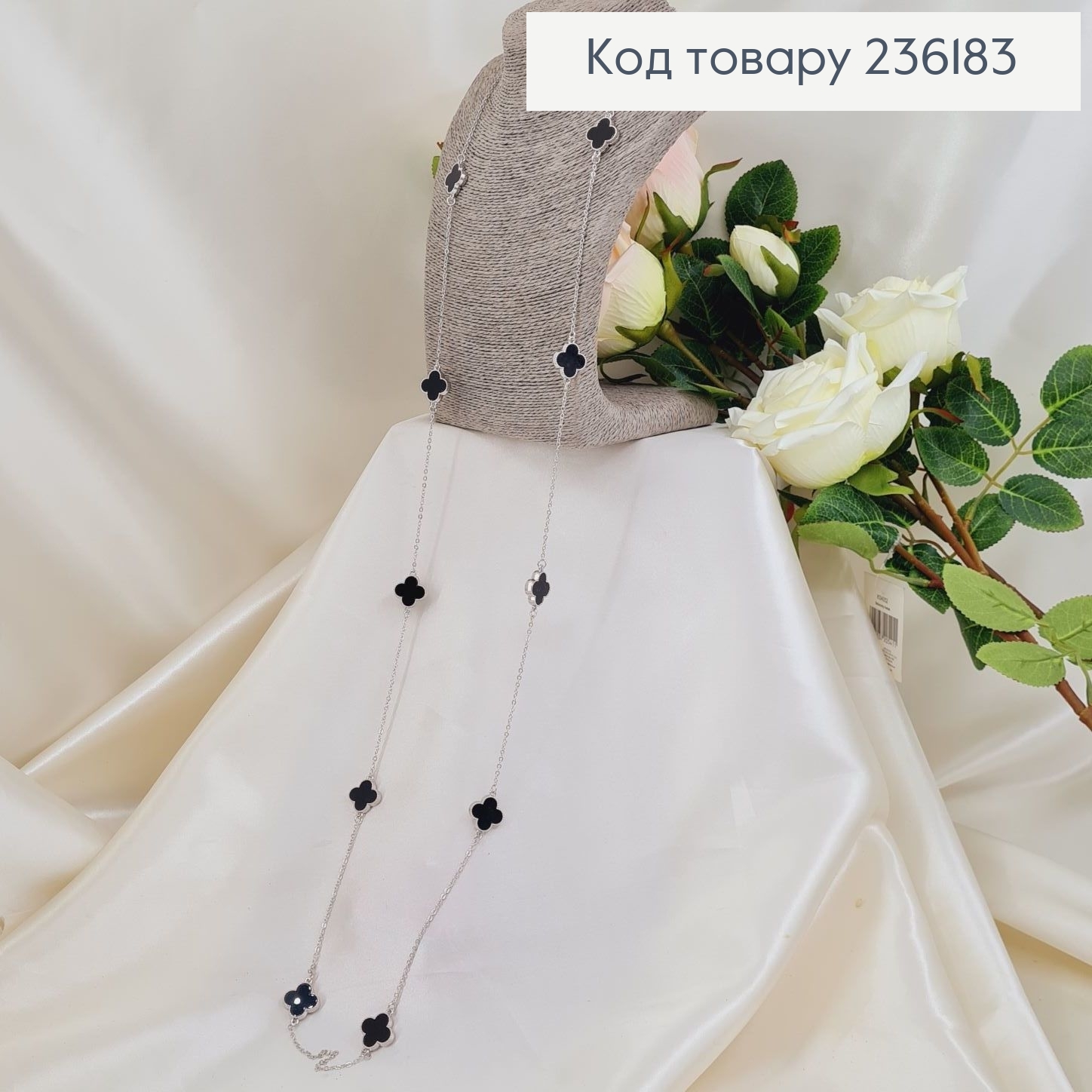 Бижутерия на шею Бусы еребряные четырехлистники с черным камнем 120 см