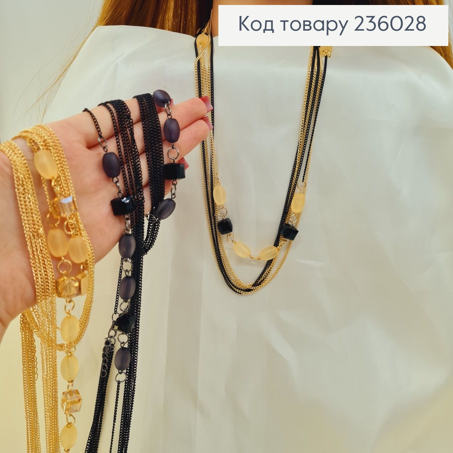 Бижутерия на шею из Бисера + Камень Капелька, 37+4см, Черно-Золотого цвета 236487 фото