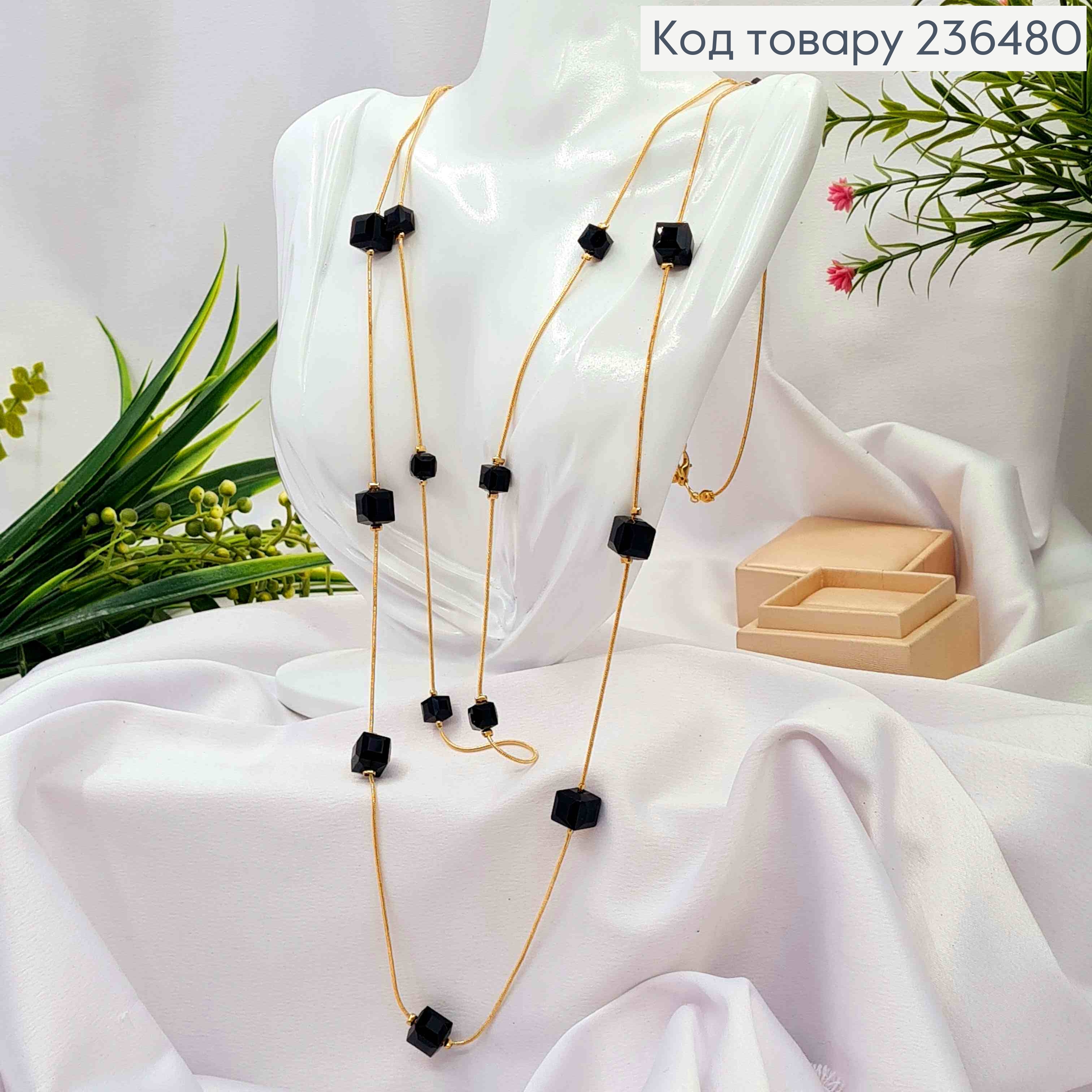 Бижутерия на шею двойная с черными квадратными бусинами, 90+4см, Золото цвета.