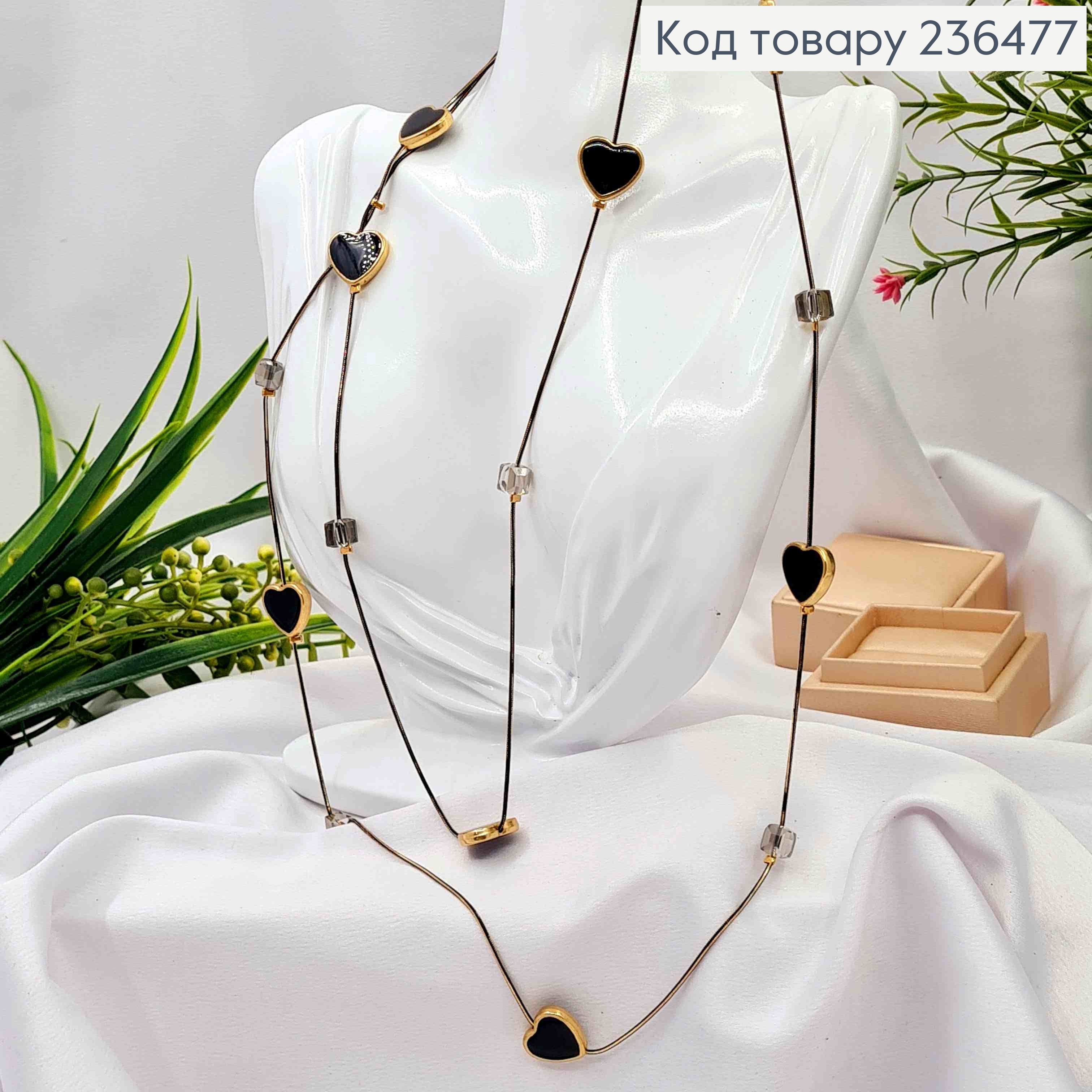 Бижутерия на шею двойная с Сердечками и квадратными бусинами, 88+4см, Черного+Золото цвета