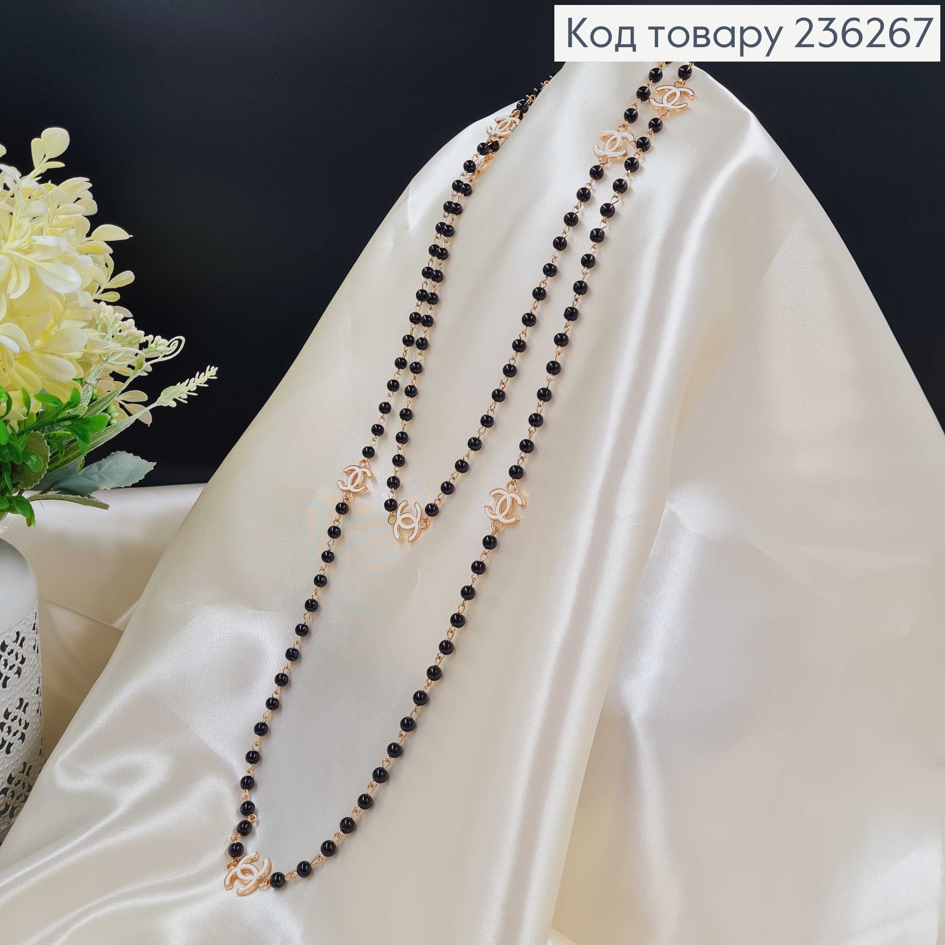 Бижутерия на шию Шанель с черными бусинками (70см) Fashion Jewelry
