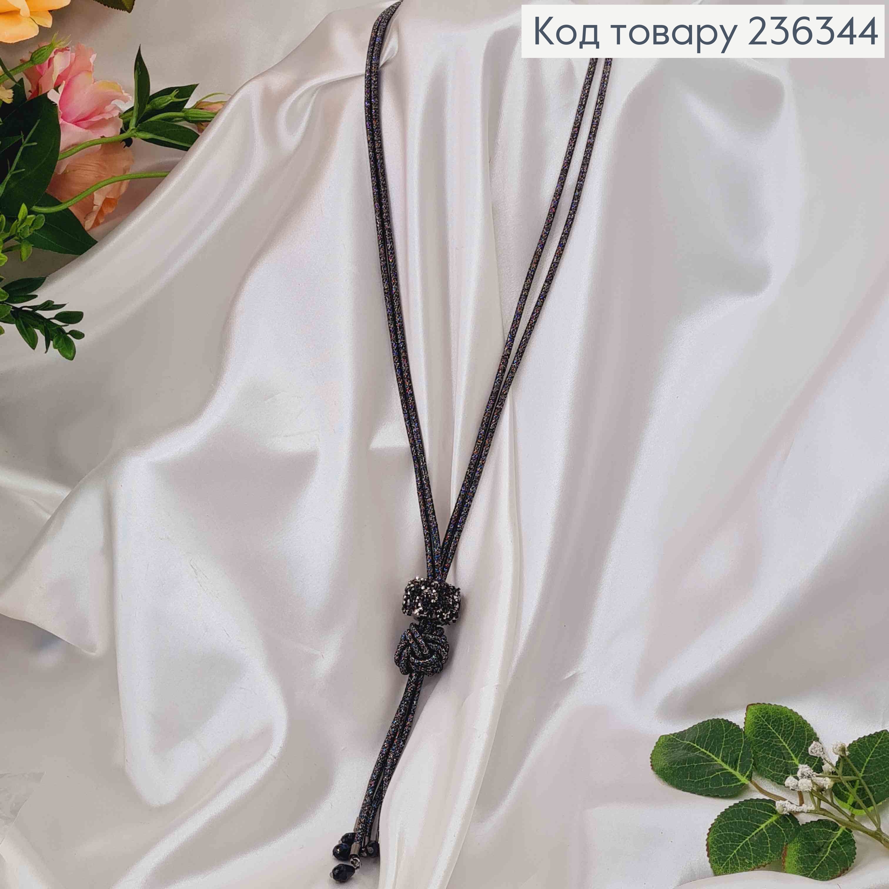 Бижутерия на шею в Серых тонах, с Узлом и шаром в камнях, дл. 50см