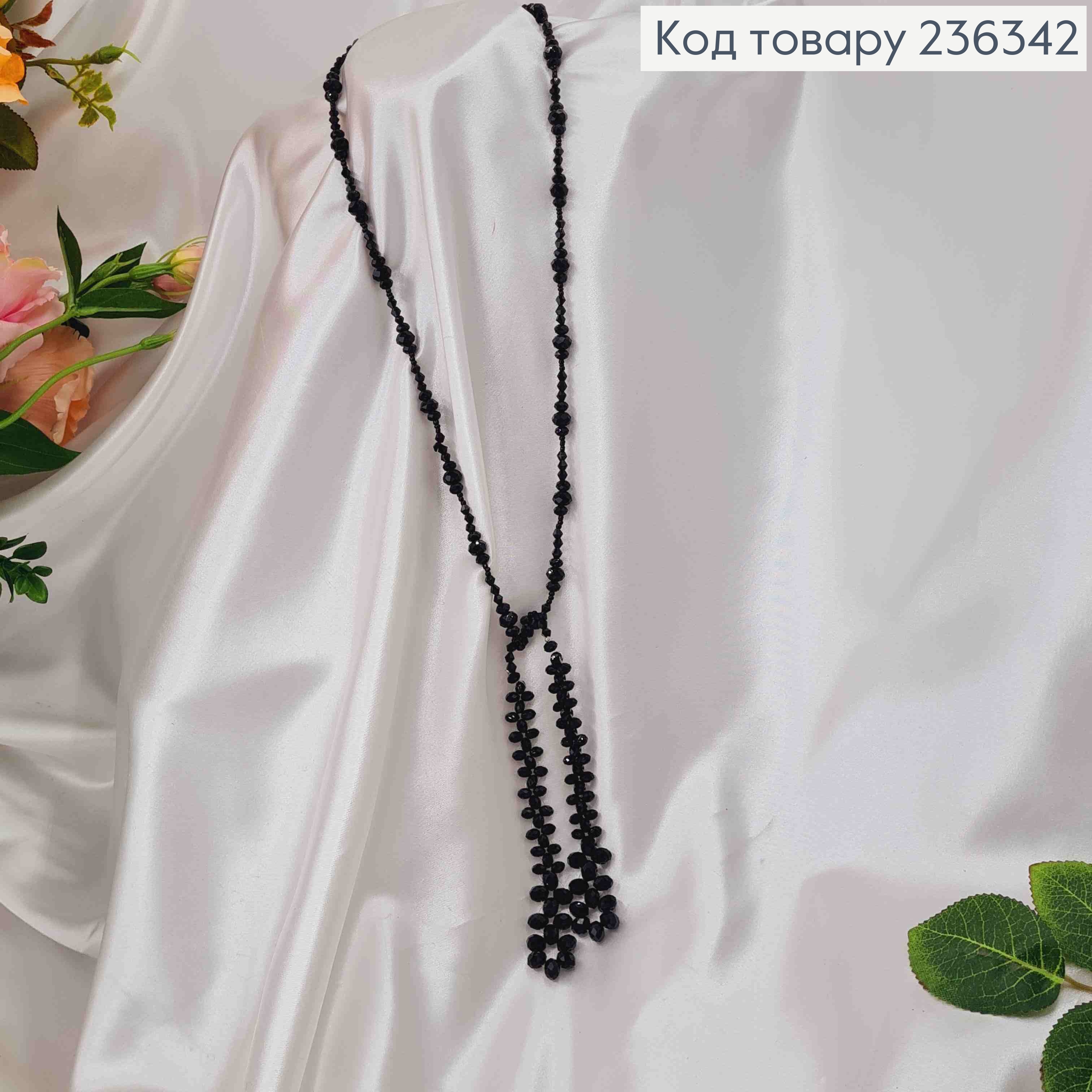 Бижутерия на шею с черным стеклярусом разного размера, плетеная, дл. 50см