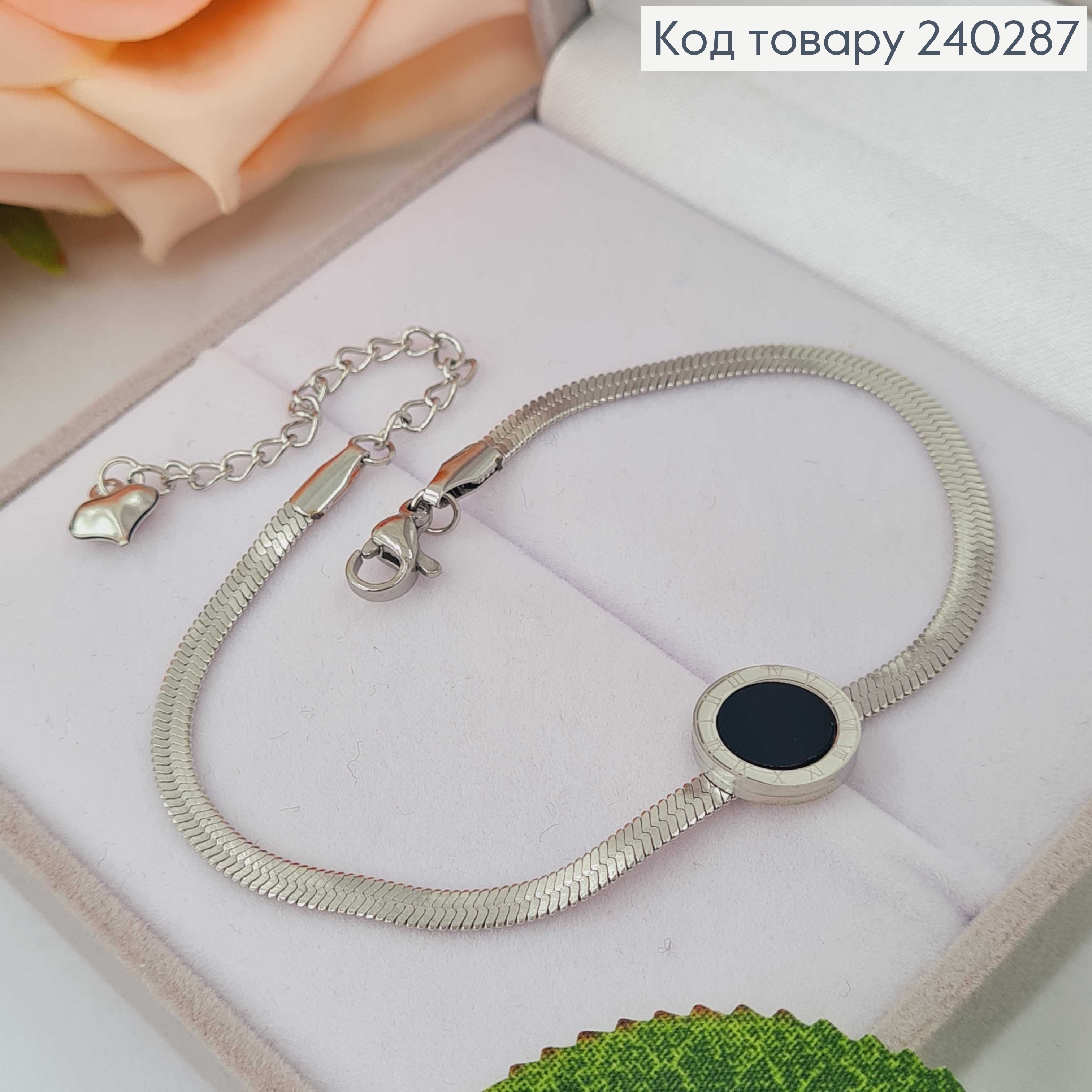 Браслет 19.5+5 см Римские часы, плоский снейк с черной эмалью, цвет серебряный, Stainless Steel