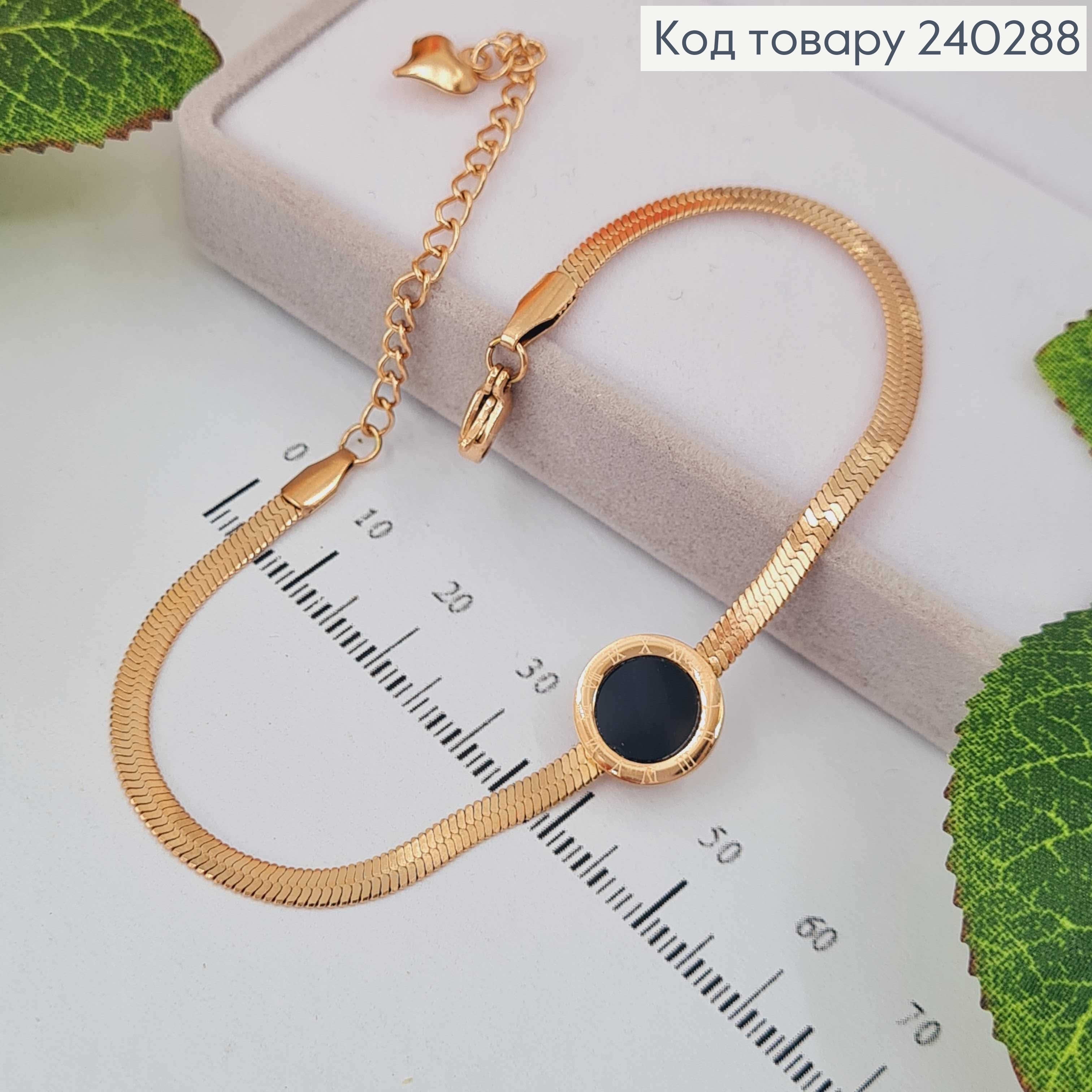 Браслет 19.5+5 см Римские часы, плоский снейк с черной эмалью, цвет золотой, Stainless Steel