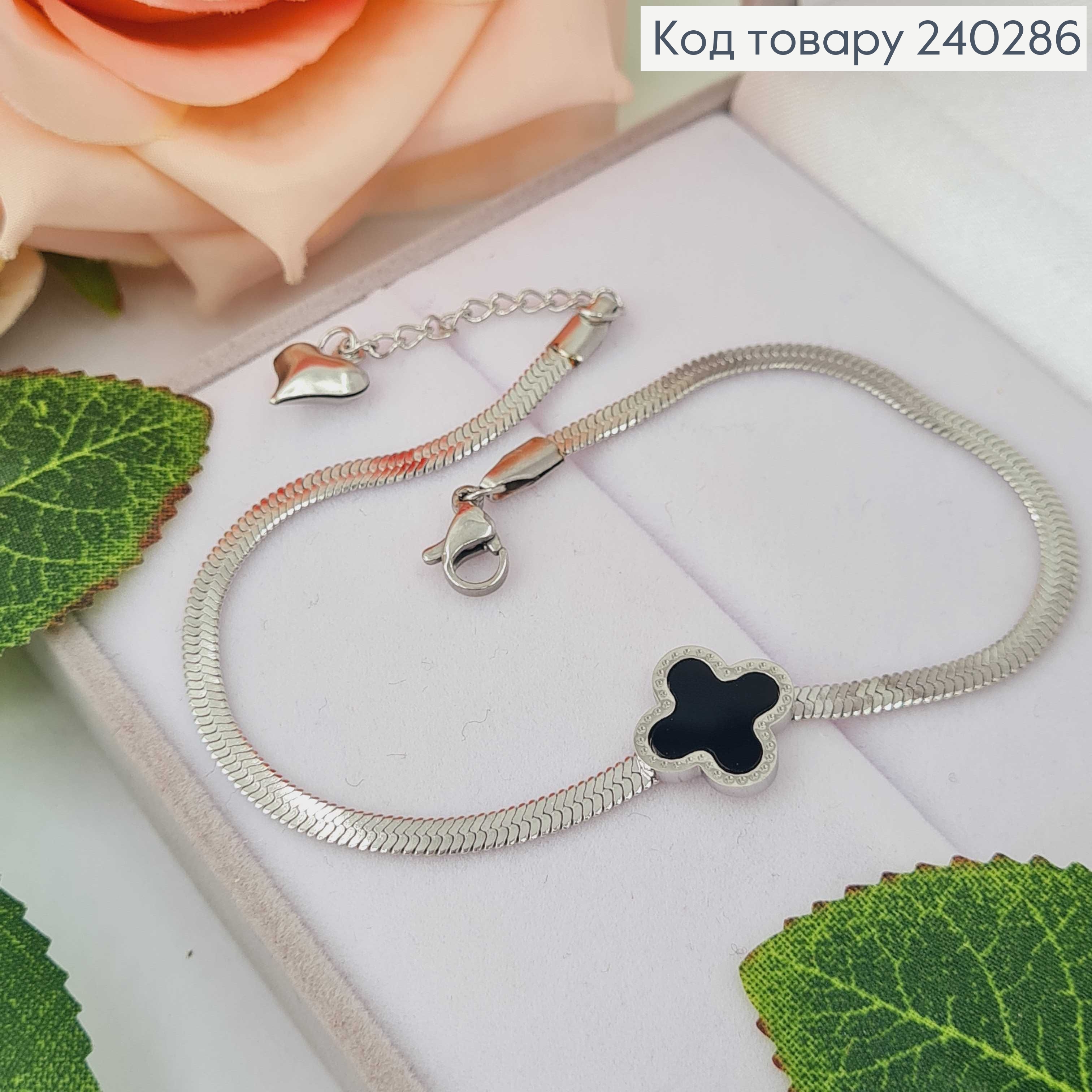 Браслет 21.5+5 см Van Cleef плоский снейк с черной эмалью, цвет серебряный, Stainless Steel
