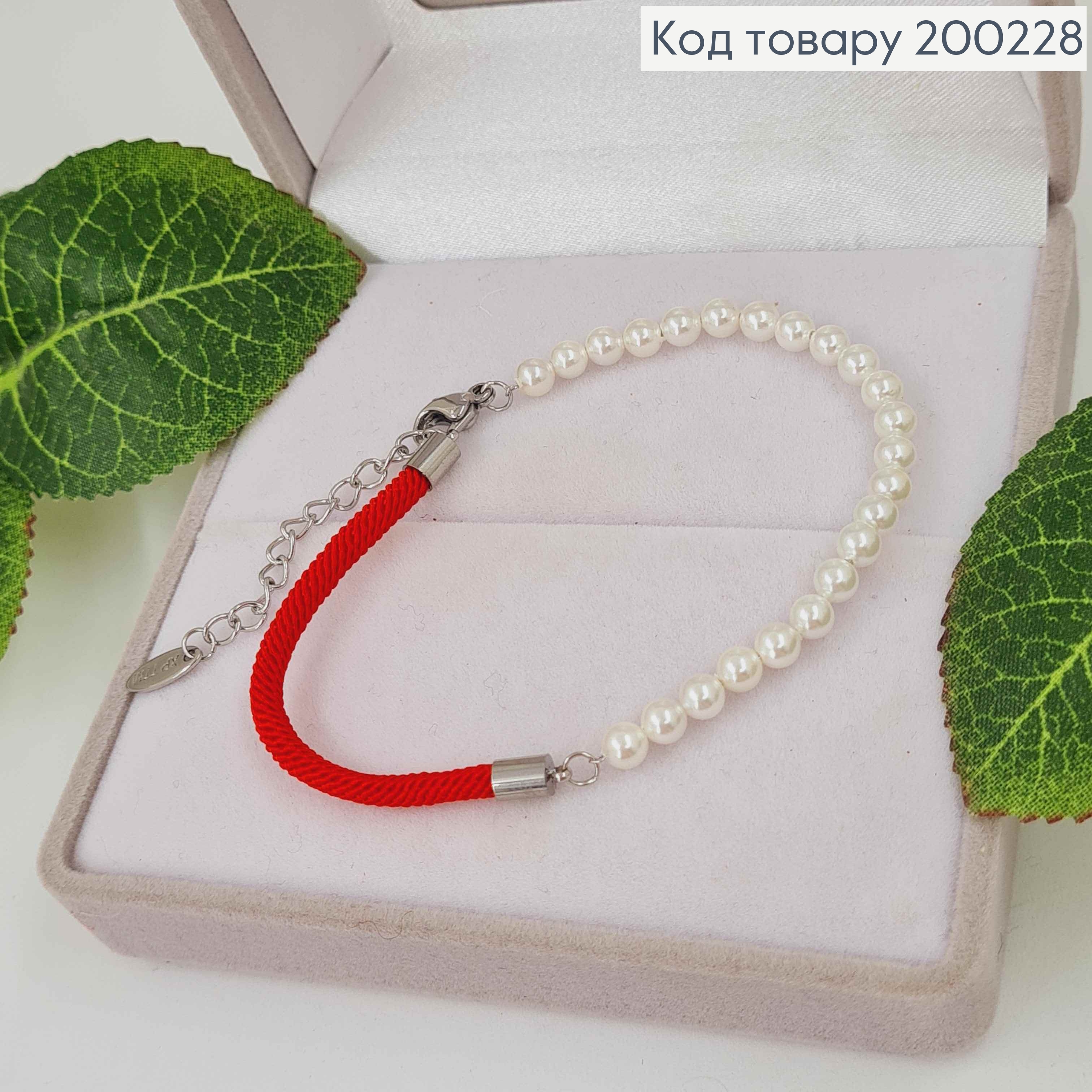 Браслет красная нить с жемчужинами, дл.18+3см, Xuping