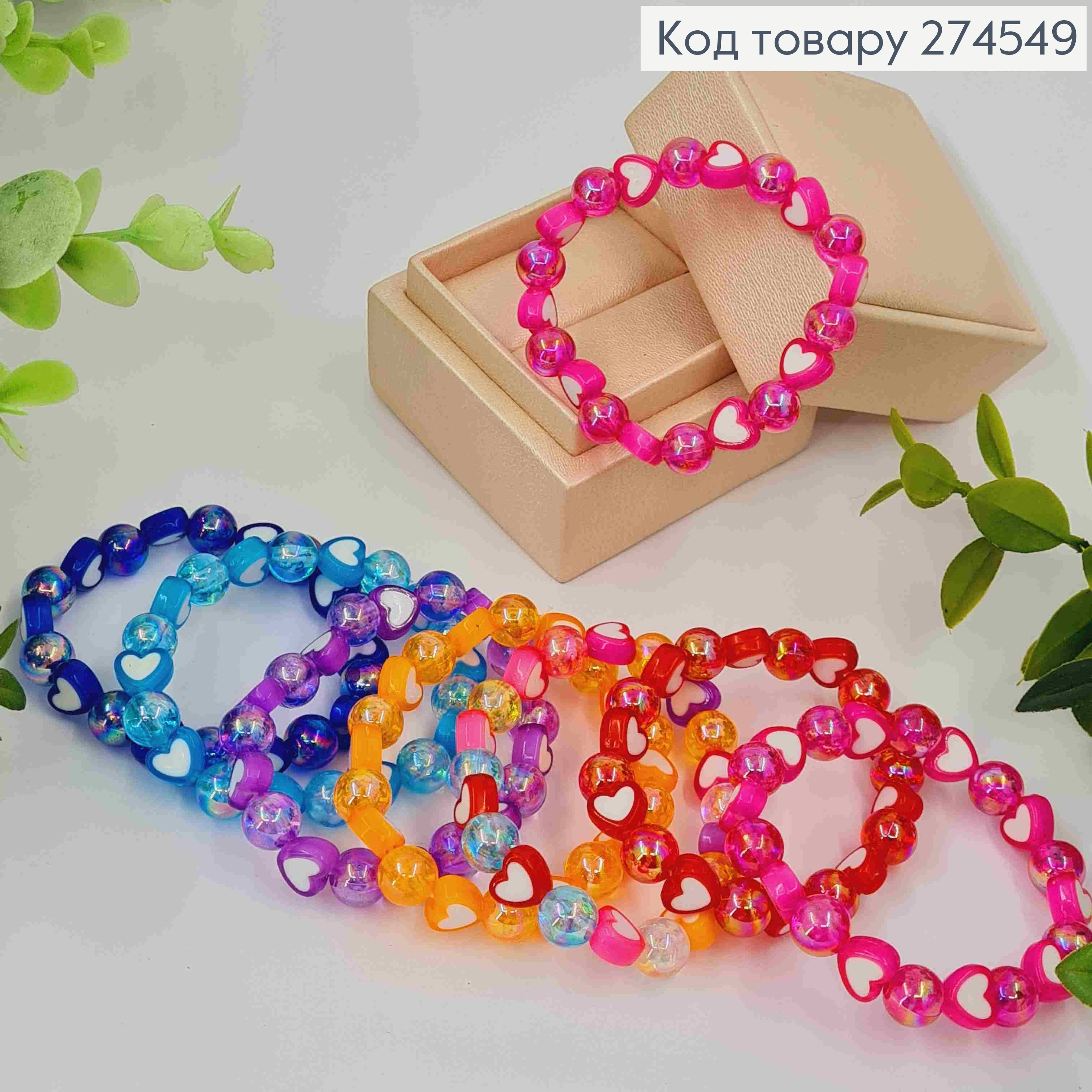 Браслет детский, с Бусинками Сердечками, Яркие цвета
