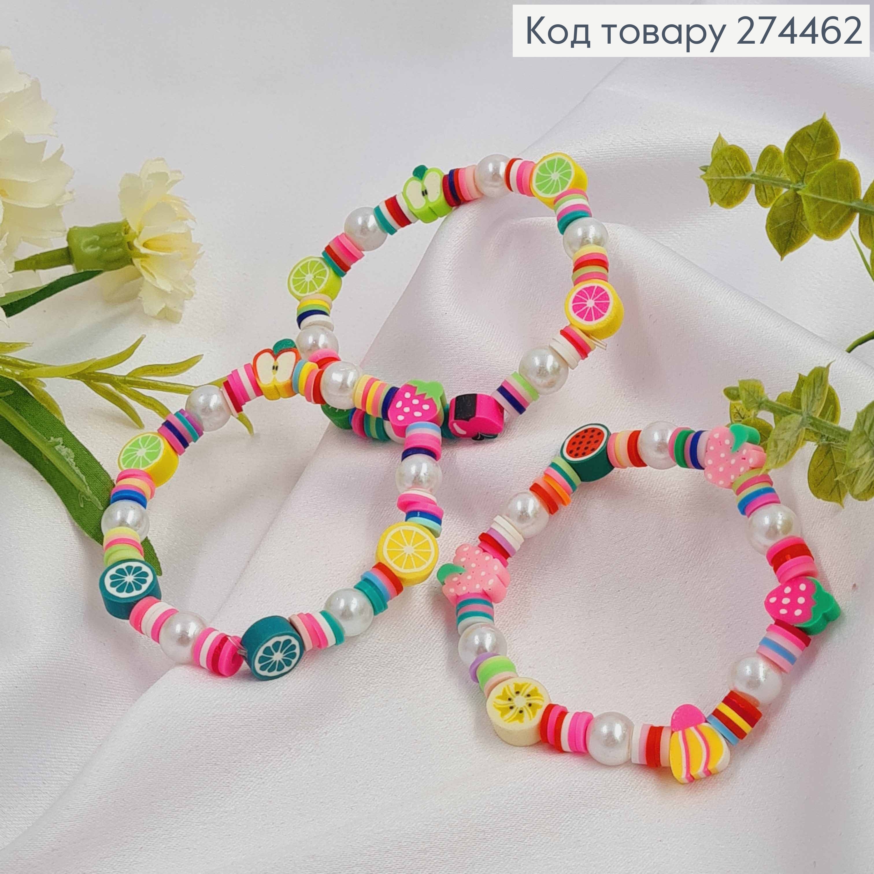 Браслет детский, с жемчужками и бусинками Фрукты, яркие цвета