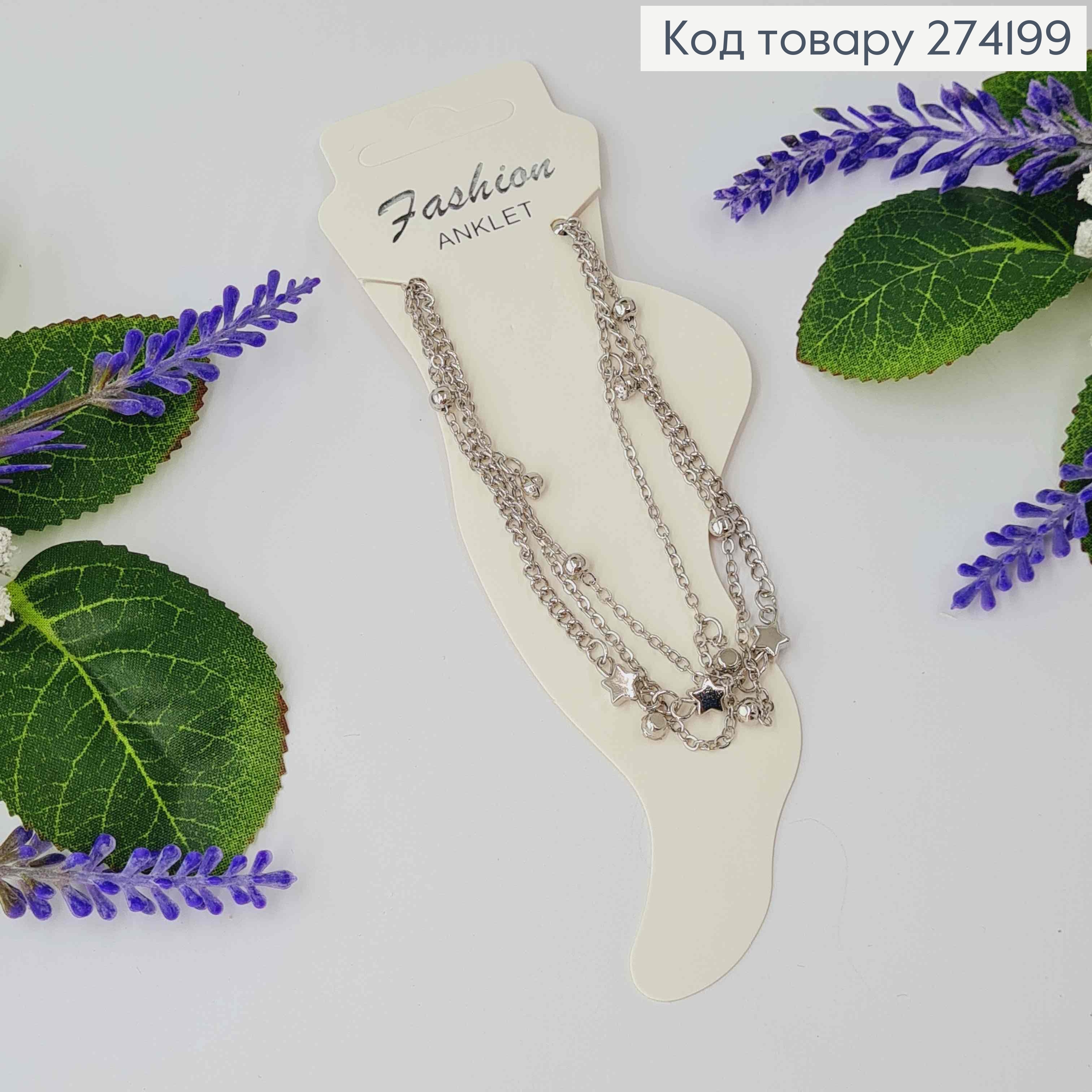 Браслет на ногу серебряного цвета с камнями и звездочками 20+5см, Fashion ANKLET