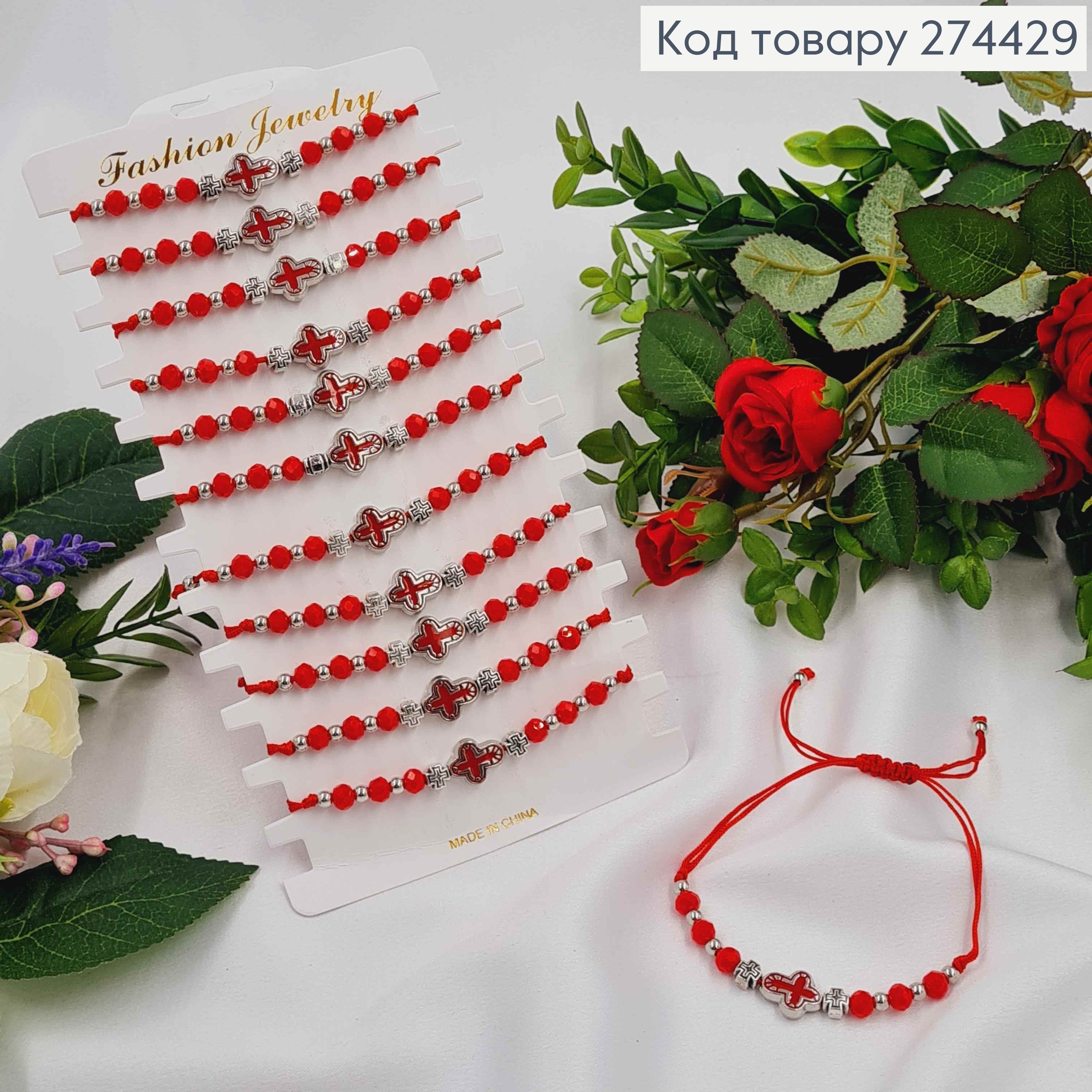Браслет на затяжке, плетеный из бусинок с "Крестиком" в камнях,в ассортименте 274590 фото