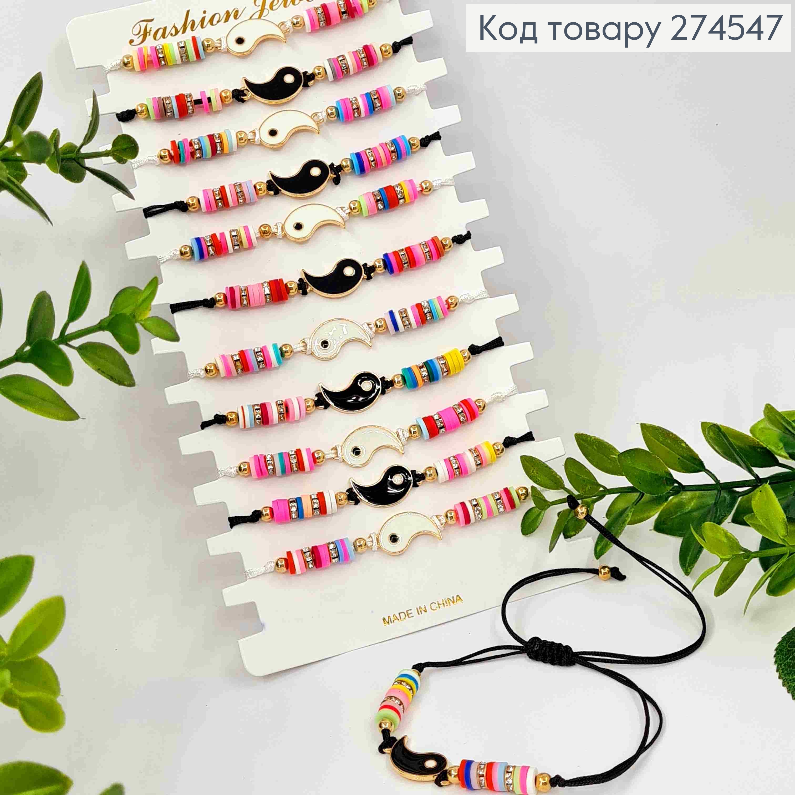 Браслет на затяжке, с Инь Янь и разноцветными бусинами.